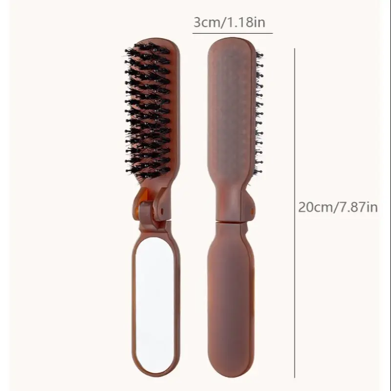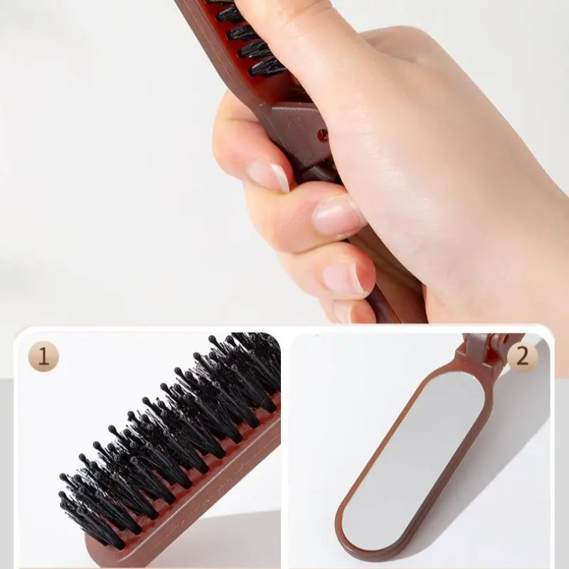 5. 2-In-1 Folding Silver Color Mirror Comb, Portable Compact Hair Brush, Anti-Static Design, Foldable Comb Mirror, Travel Size, Unisex