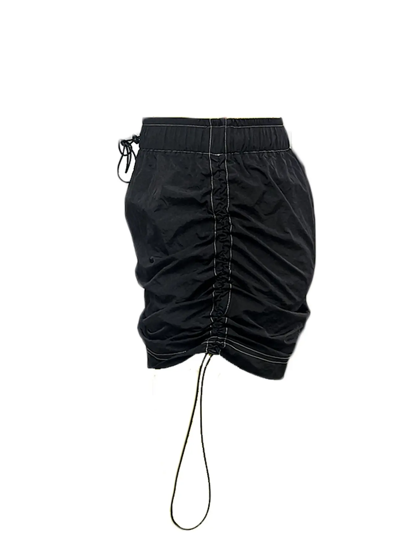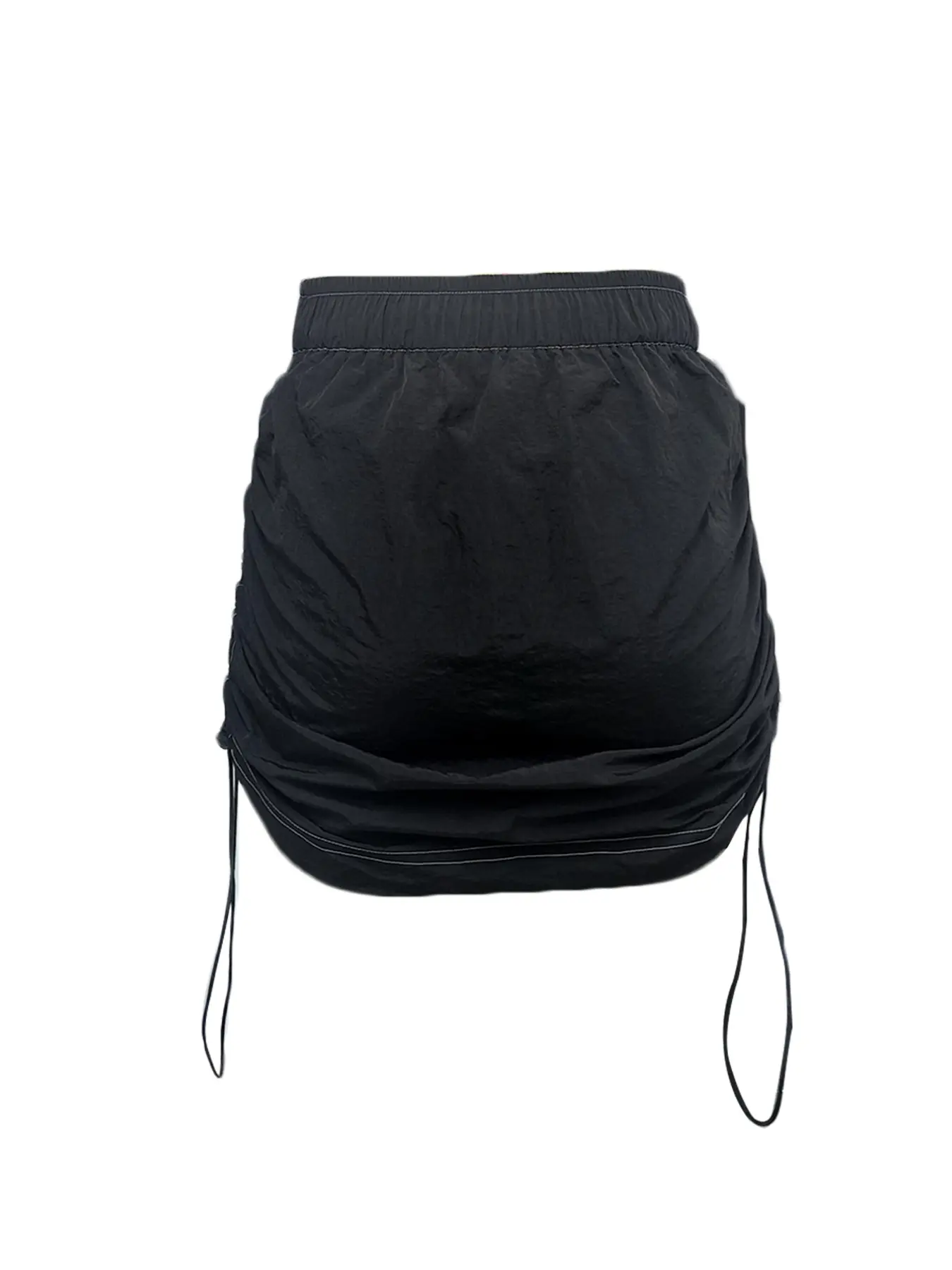 GILIPUR Women's Black Drawstring Ruched Mini Skirt, Mid-Rise Bodycon Skort with Side Tie Detail, Y2K Streetwear Casual Cargo Skirt for Summer, Beach, Club & Daily Outfits TChic
