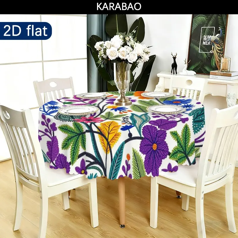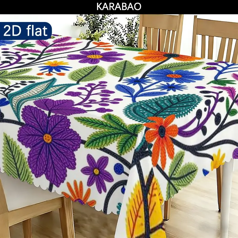 2D flat, 1PC, Elegant Floral Tablecloth, Overlay Table Cover, Perfect Home Decor, Ideal Gift for Friends, Indoor & Outdoor Use, Kitchen Dining Room Accessories