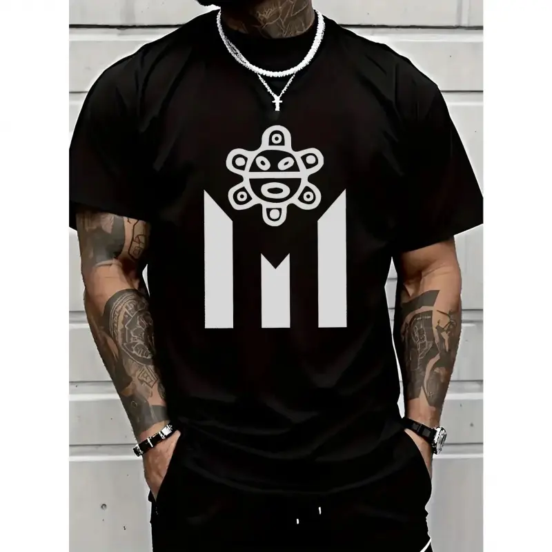 5. Men's Cotton Puerto Rico-Inspired Graphic Tee - Breathable, Lightweight & Machine Washable for Casual Outings, Sports & Casual Attire, Simple Lines, Festival Gift