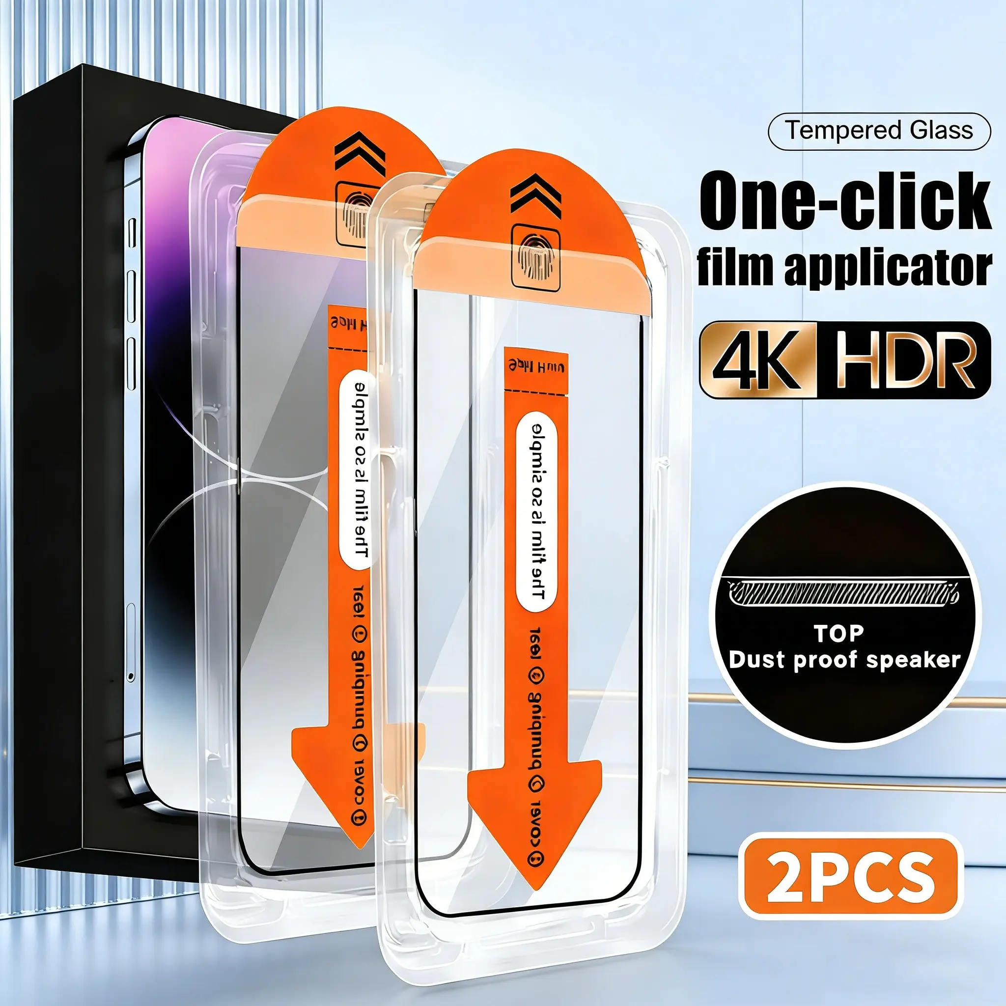 2 PCS Full-Cover Privacy Tempered Glass Screen Protector for iPhone series, 9H+ Hardness, Ultra HD, Anti-Scratch, Earpiece dustproof,Dust-free One-Click Installation