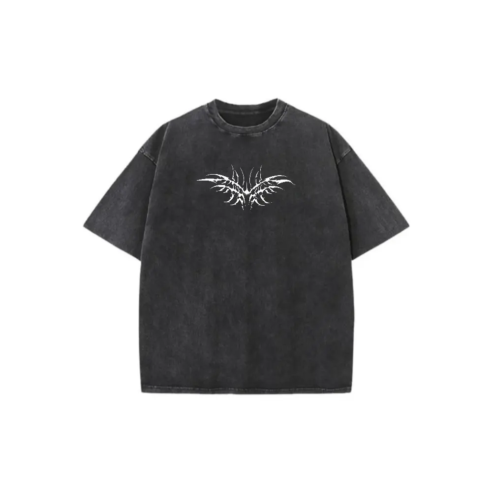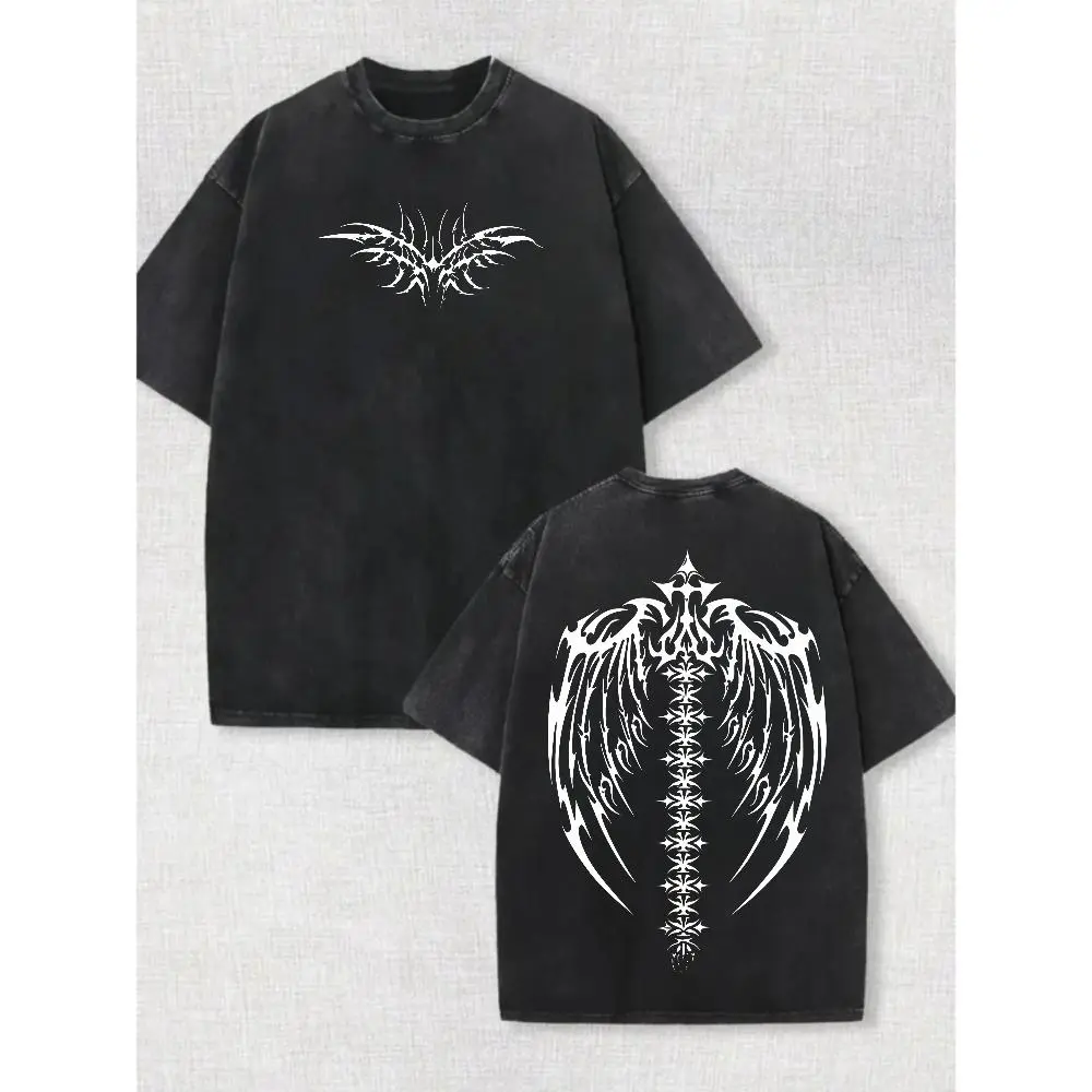 Gothic Winged Skeleton Graphic Vintage Washed Cotton T Shirt Mens Oversized Streetwear Crew Neck Short Sleeve Tee for Daily Wear Punk Rock Casual Outfit Hip Hop Y2K Retro Print Urban Style Breathable Soft Comfort Fit Edgy Aesthetic Top