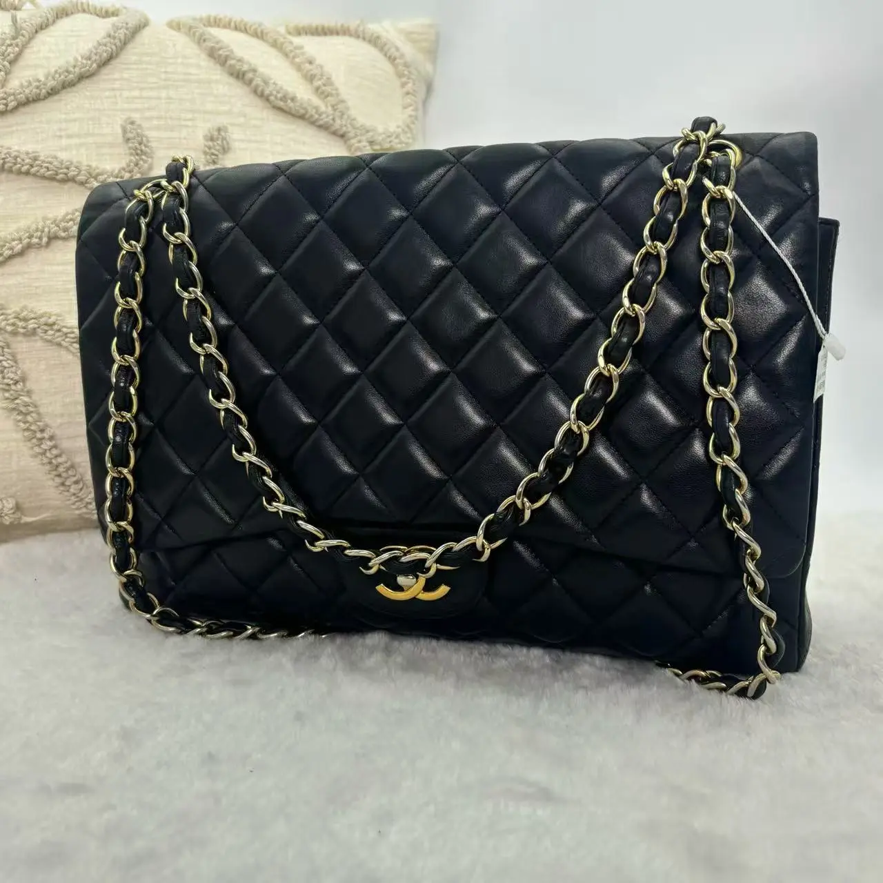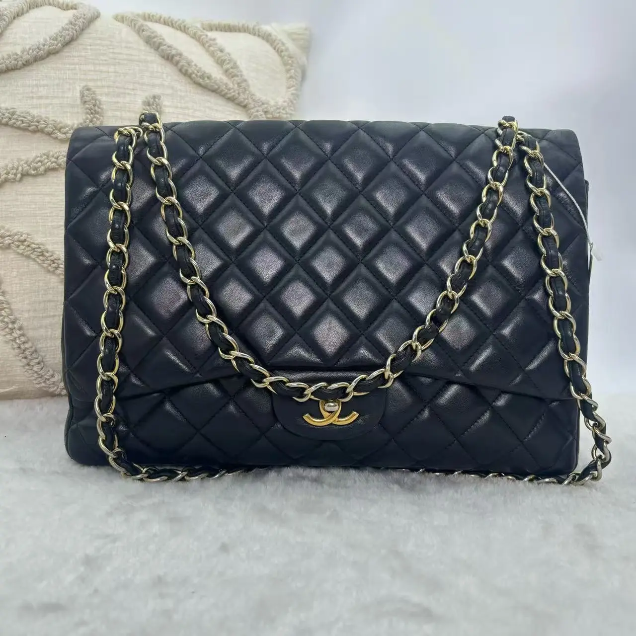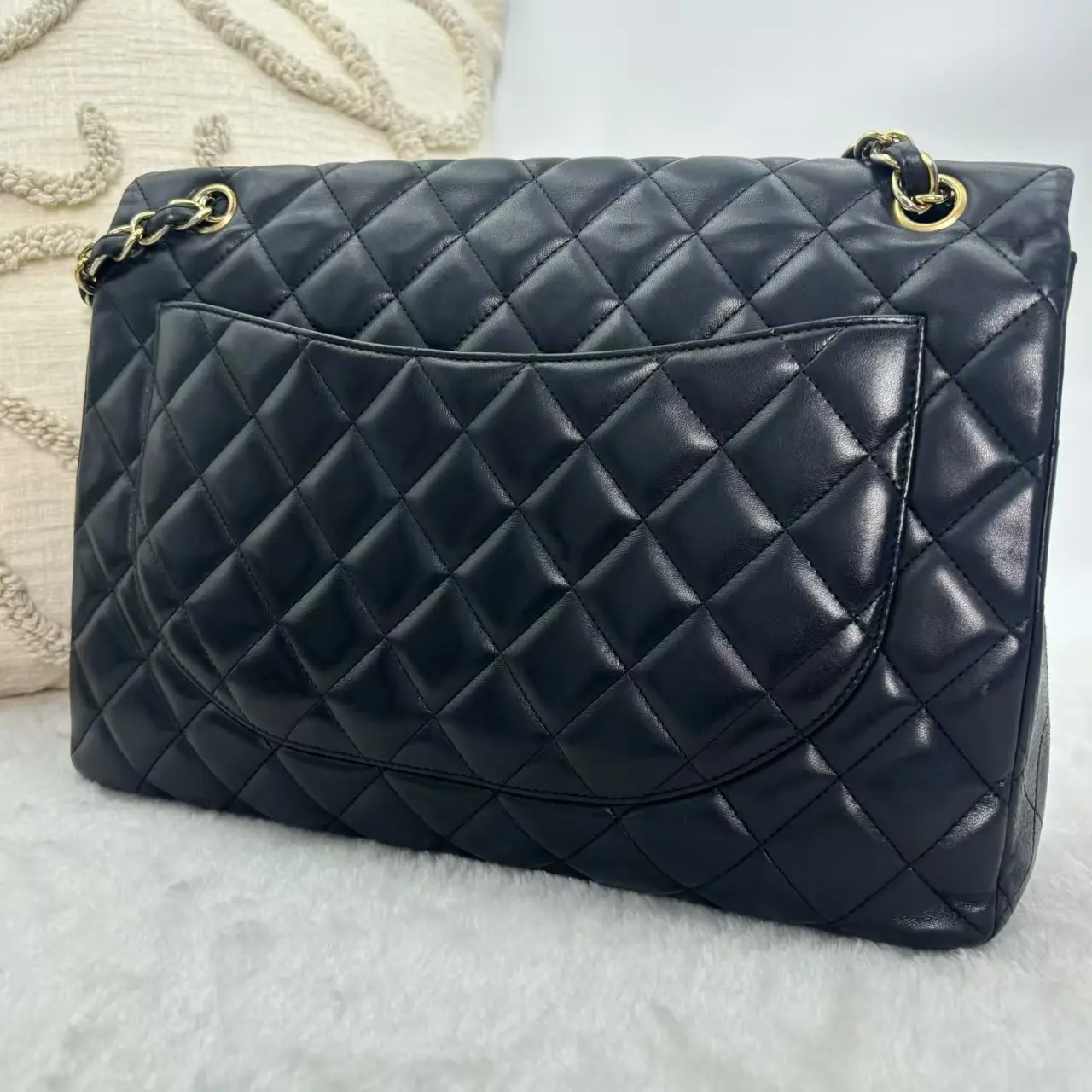 Chanel Classic Flap Jumbo | Black Lambskin Gold Hardware, Maxi Size