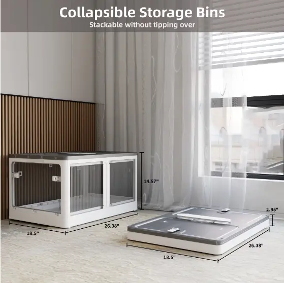 【Large Storage Capacity】: Each storage case measures 26.38 inches long × 18.5 inches wide × 2.95 inches high. These space-saving trash cans are essential for home organization and provide an ideal solution for keeping your home tidy and organized.