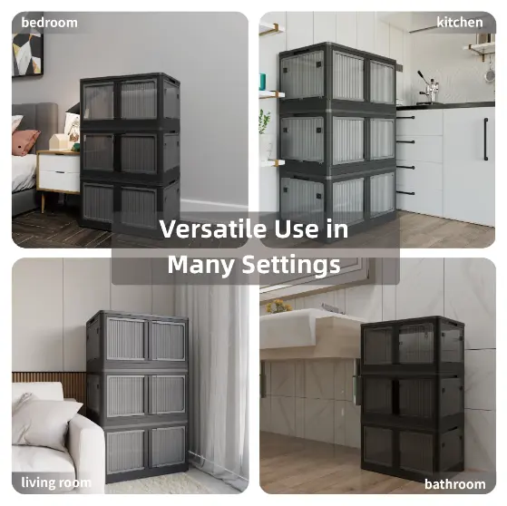 Multifunctional storage organizer with wide applications: Large storage cabinets are ideal for organizing toys, crafts, photos, clothing, hats, snacks, food, medications, etc. Our stackable storage bins with handles offer highly adaptable and flexible storage options to meet your different needs—kitchen cabinet organizer, bathroom organizer, closet laundry organizer, dorm essentials storage bin, classroom book storage bin, snack storage bin, toy storage bin, car trunk storage bin, camping storage bin, office storage bin, etc.