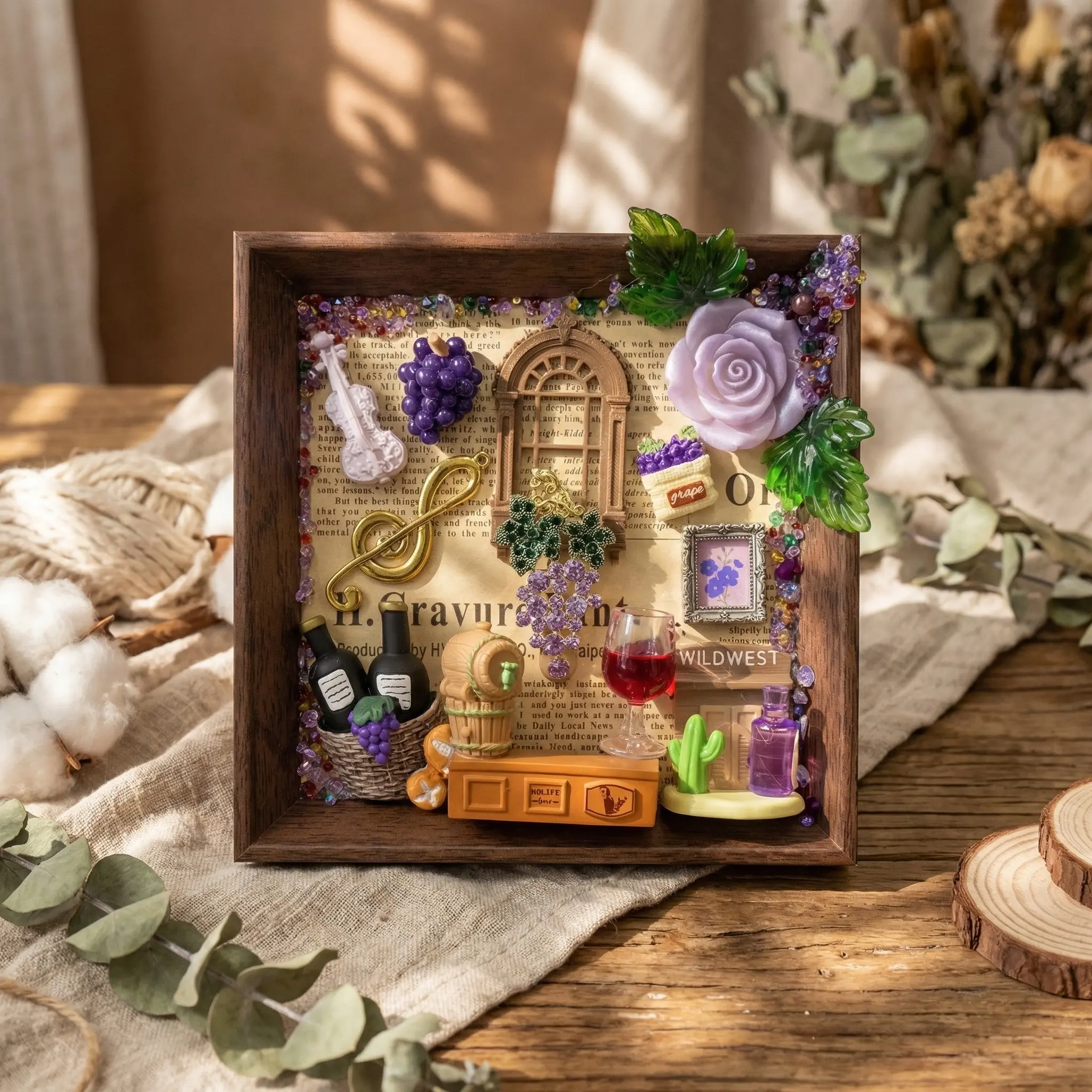 Unique Texture: Combine glossy resin, shiny metal, and delicate natural pieces for a layered look.