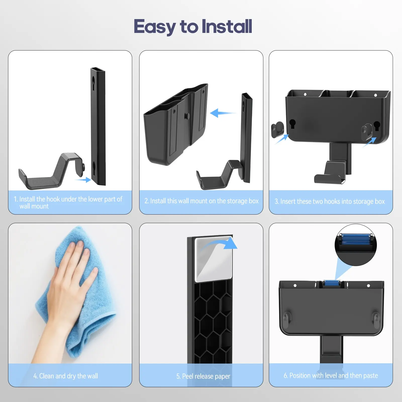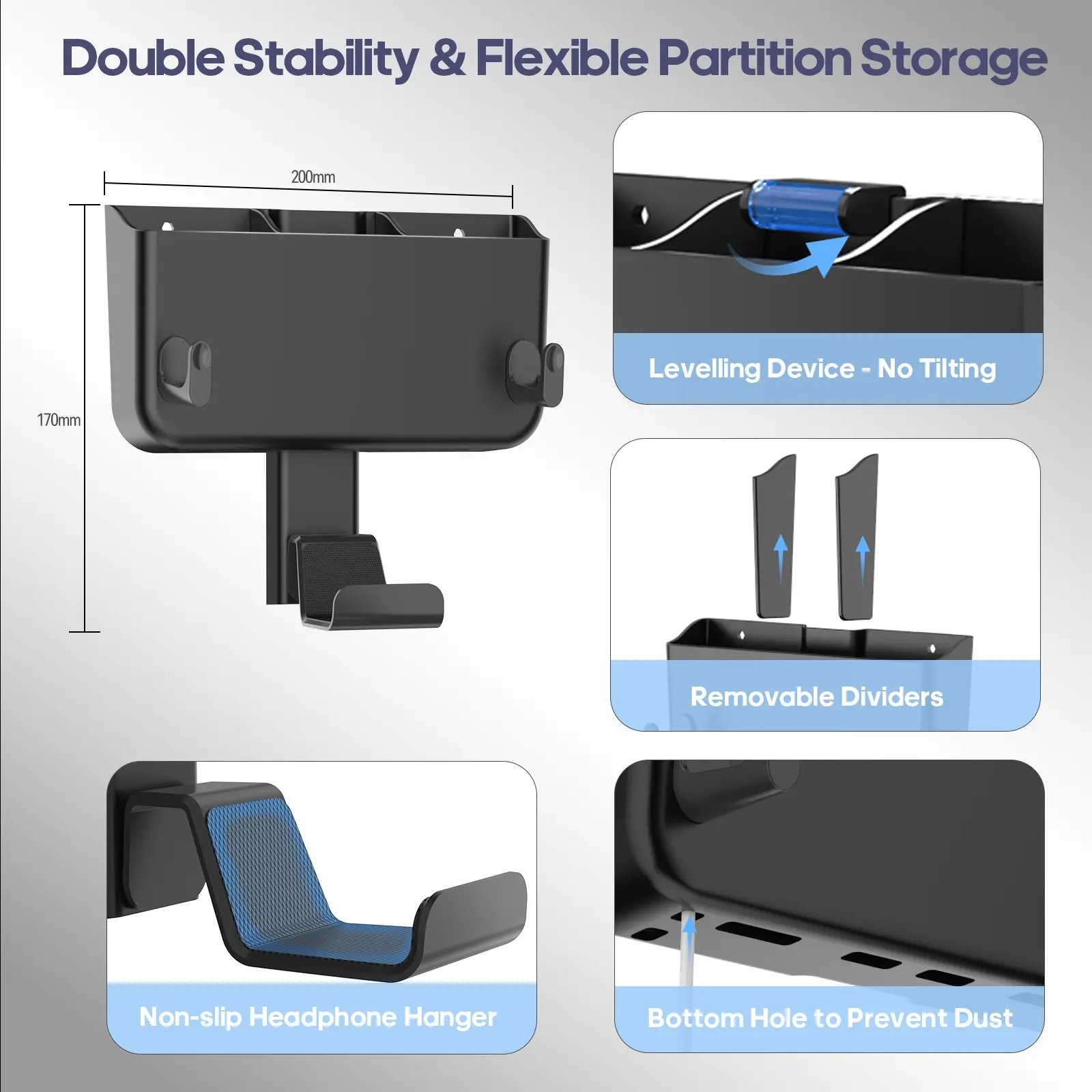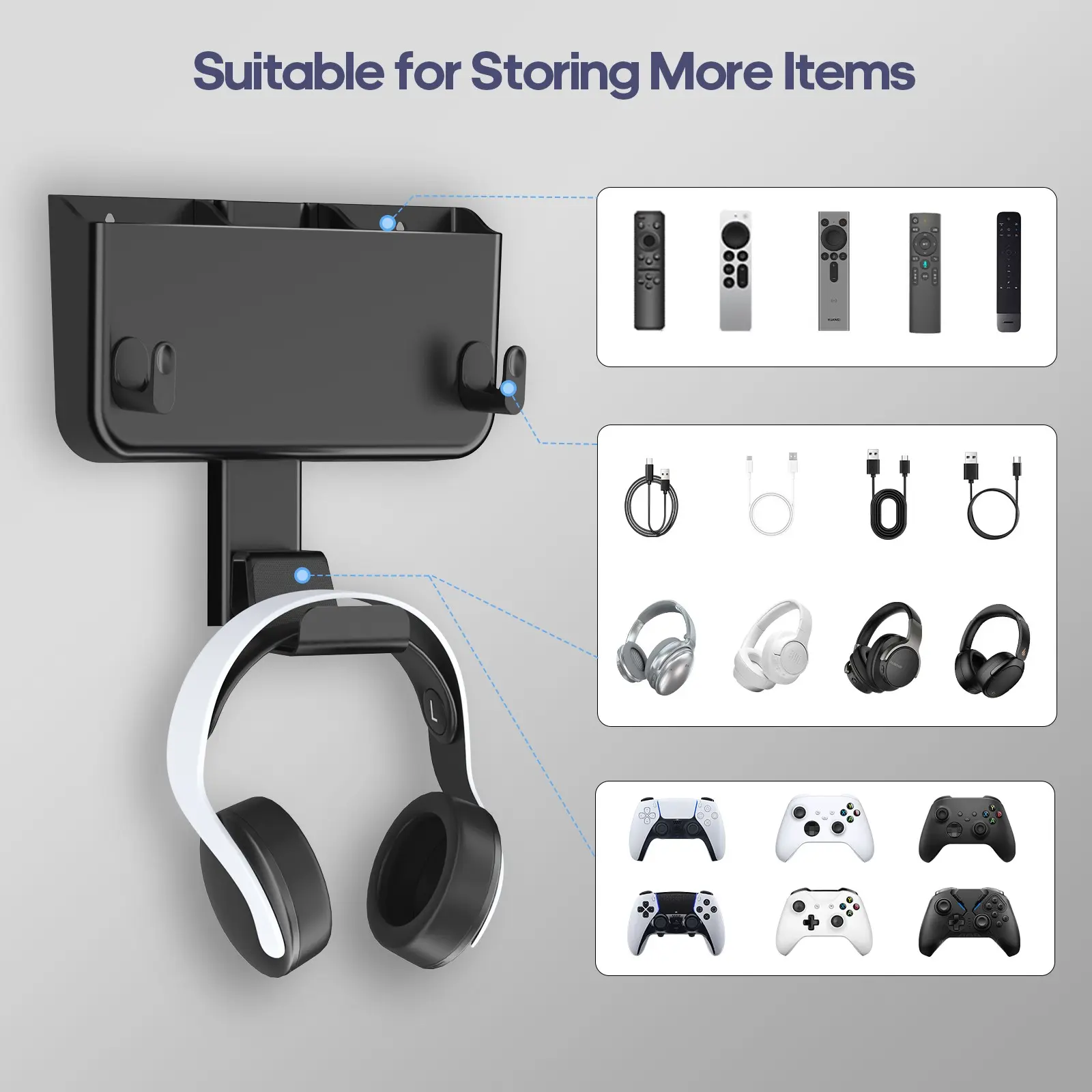 Adhesive Remote Control Holder Wall Mount with Headset Hanger, 3 in 1 Organizer TV/Fan Remote Caddy with Hook for Headphone, No Drill Controller Storage Bracket, Bed Wall Rack