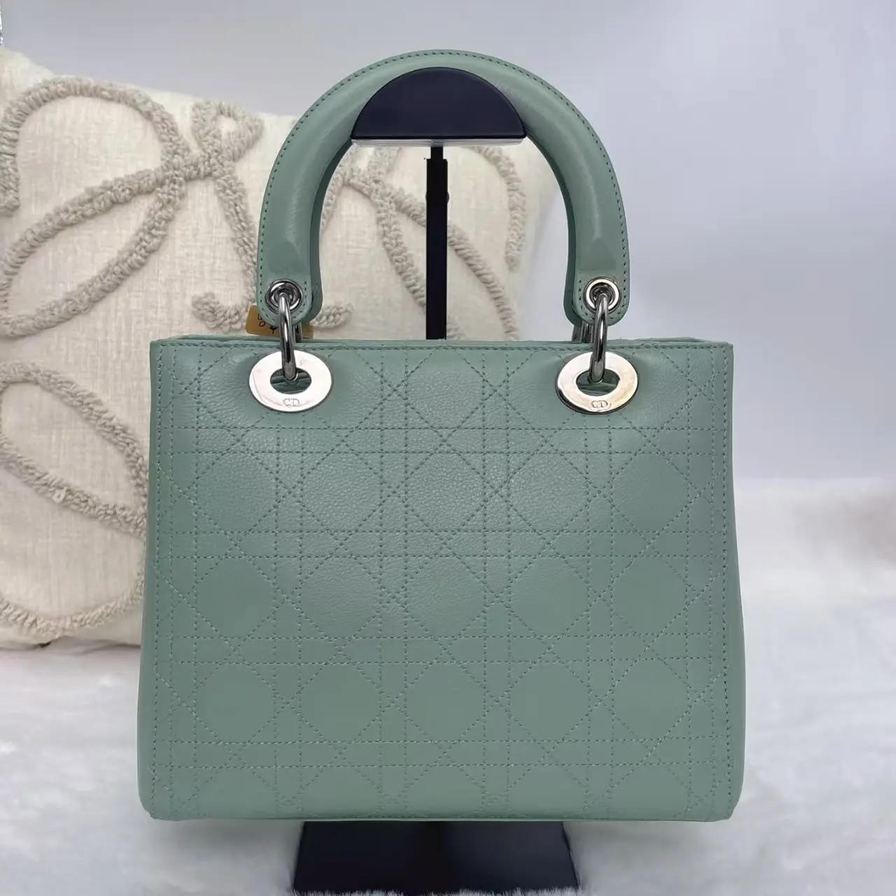 Lady Dior | Mint Green Grained Calfskin Silver Hardware Handbag