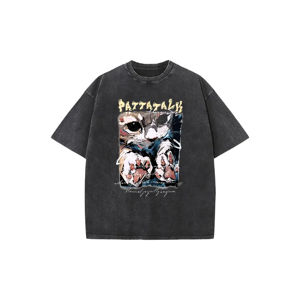 Cat Vintage Washed Oversized Tee, Retro Japanese Style Cute Cat Graphic T-Shirt, Perfect for Cat Lovers & Kawaii Aesthetic Fans