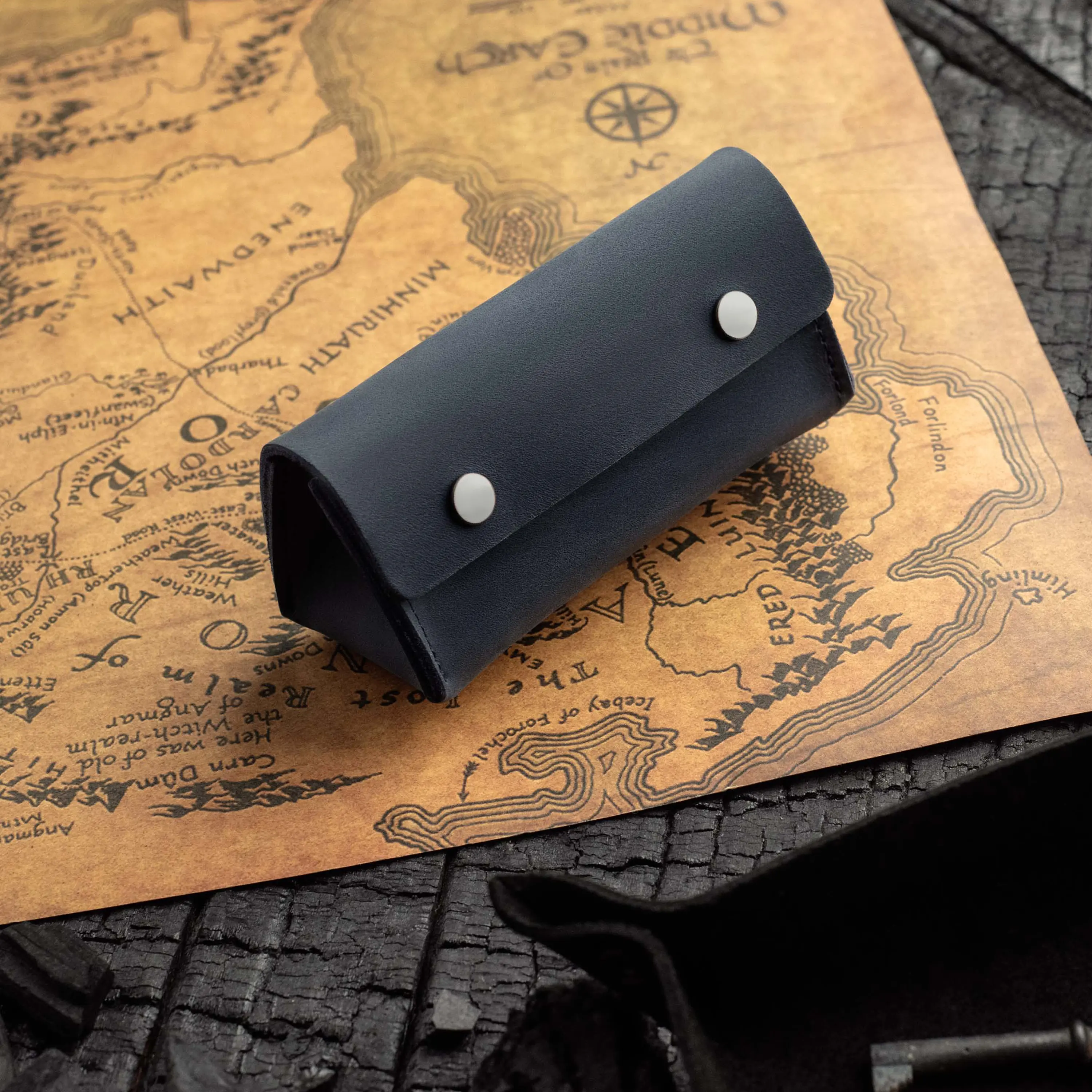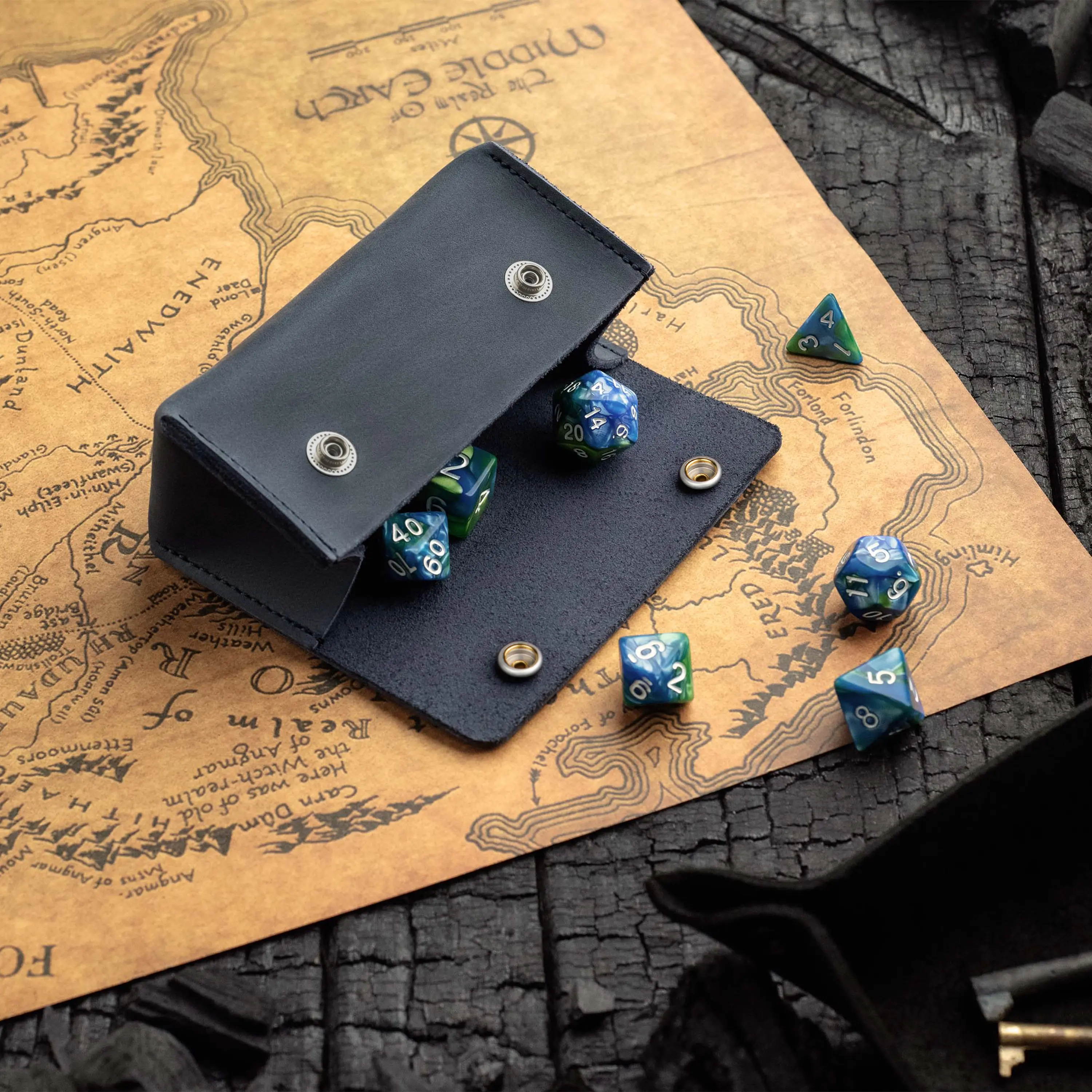 Secure your dice in a durable leather holder with a sturdy structure and soft, spacious interior. Designed to keep dice, cards, and miniatures organized, this leather dice bag protects your gaming essentials with solid snap closures. Available in two compact sizes, it's convenient for any tournament. This thoughtful, personalized leather dice bag makes a great gift for gamers.