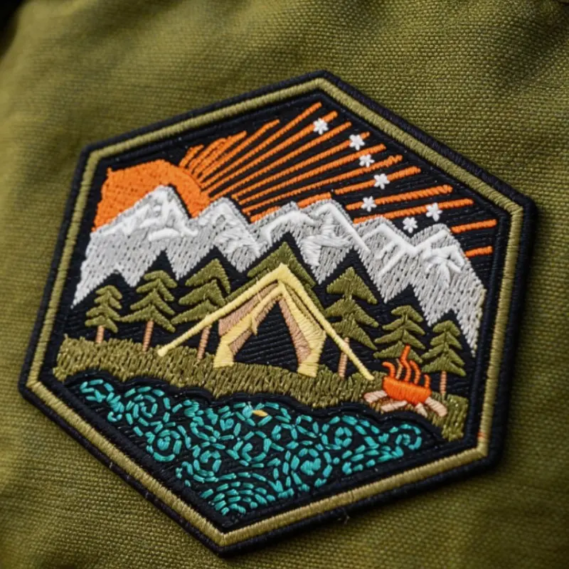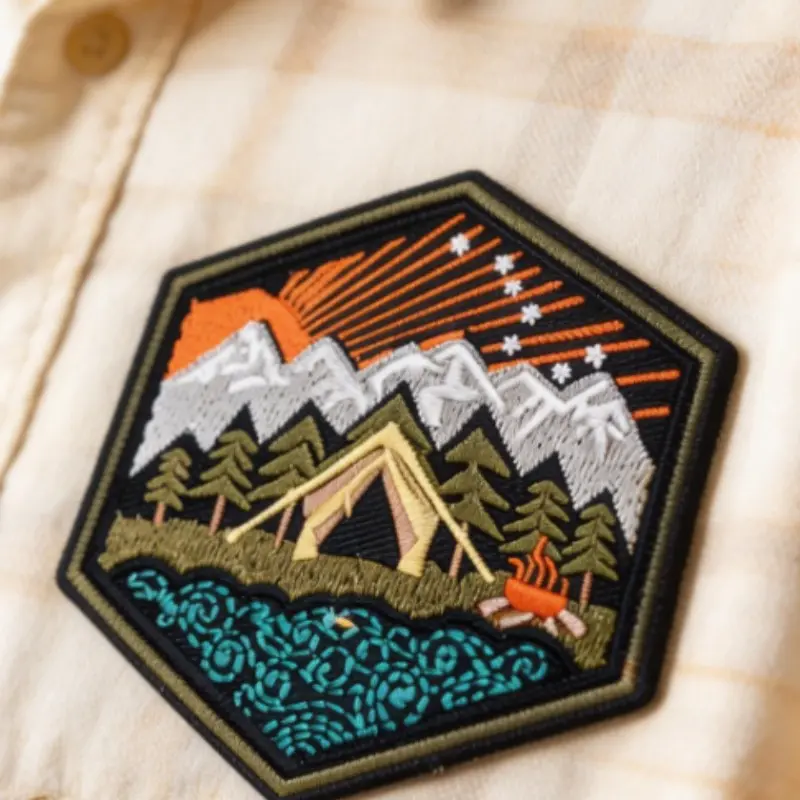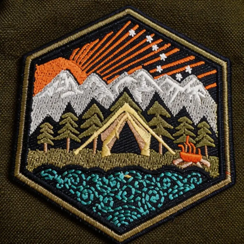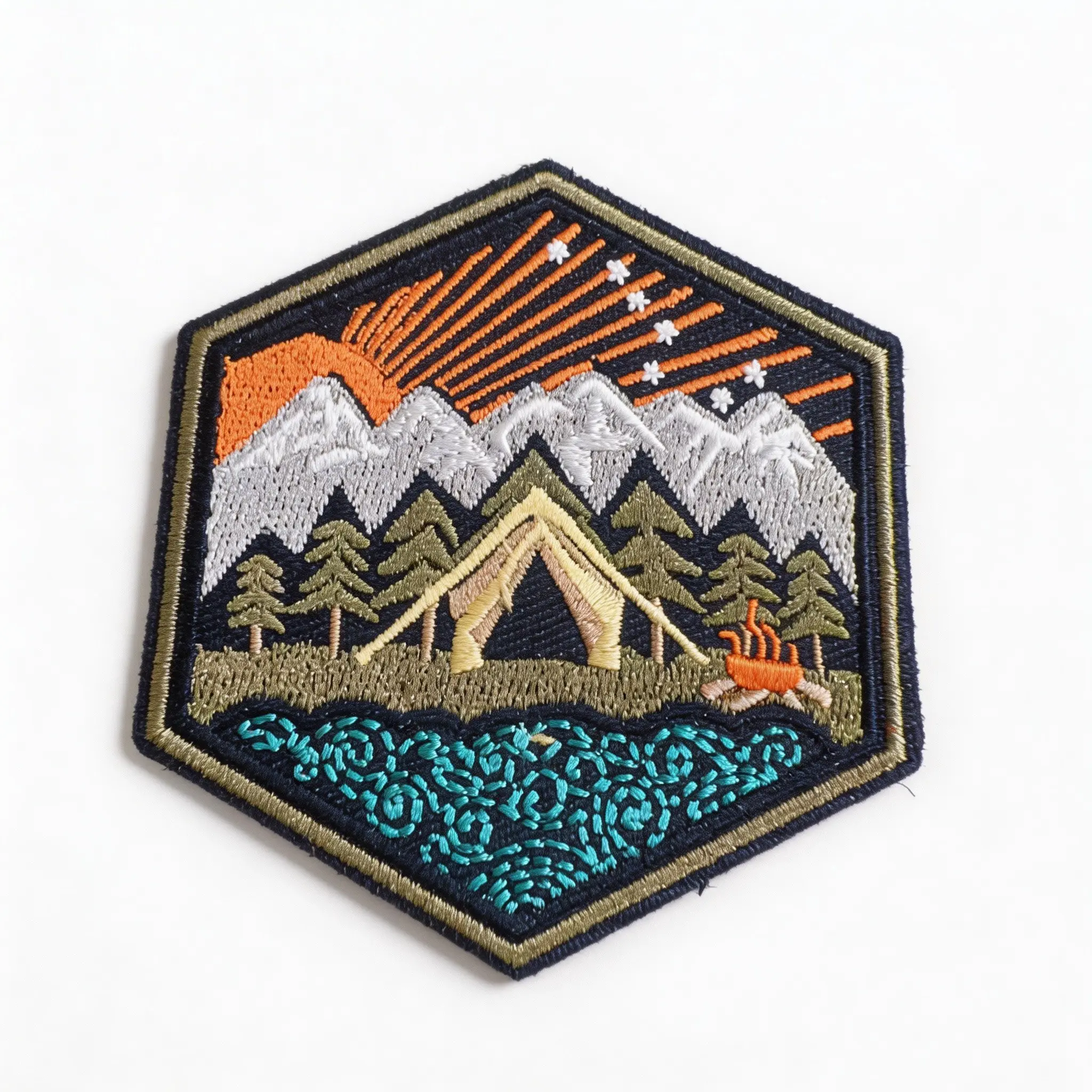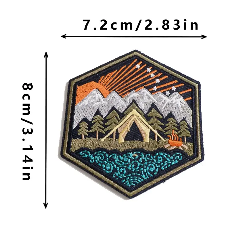 2PCS Camping Velcro Patch – Mountain Tent Outdoor Adventure Embroidered Badge for Backpack Jacket Hat