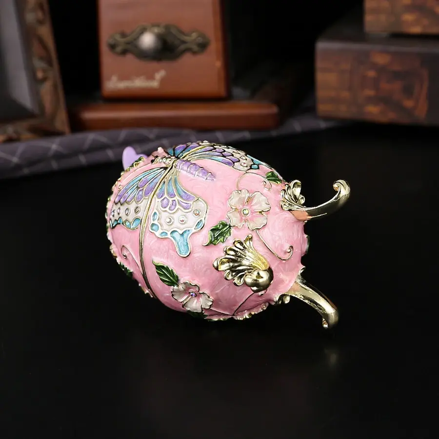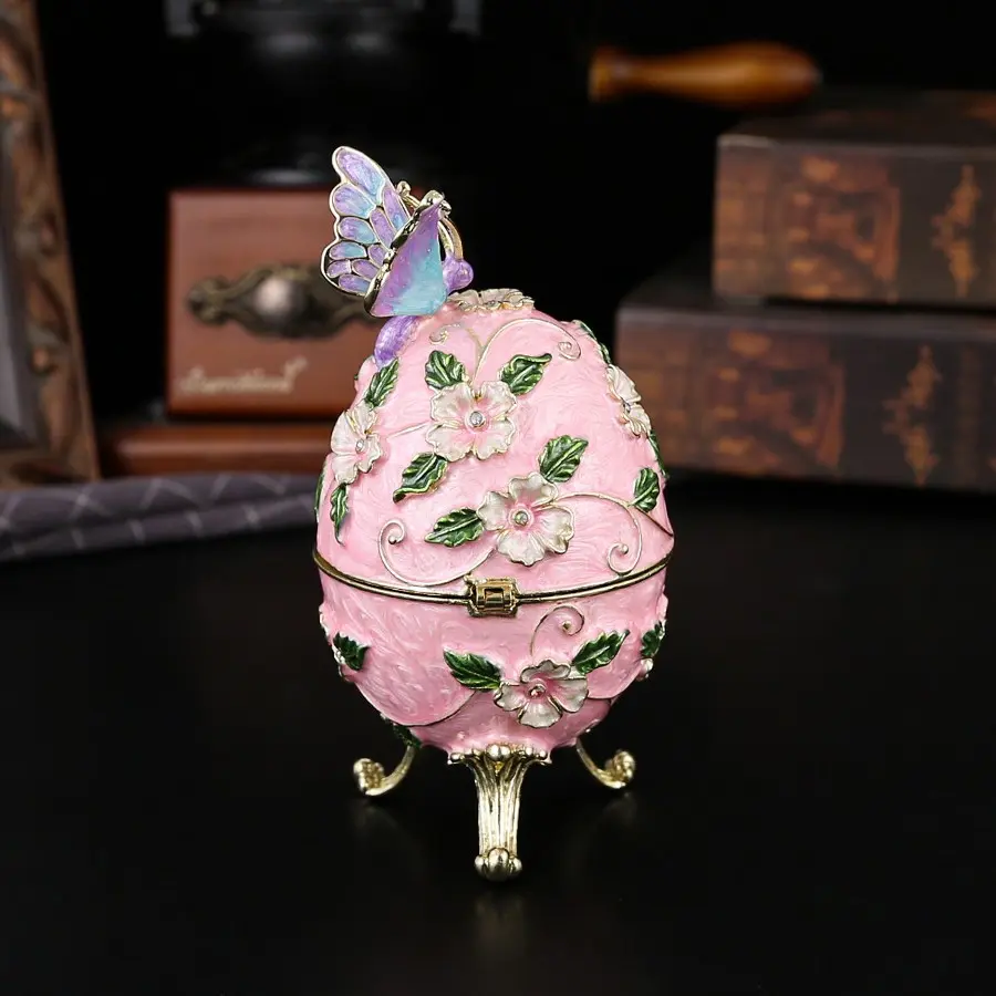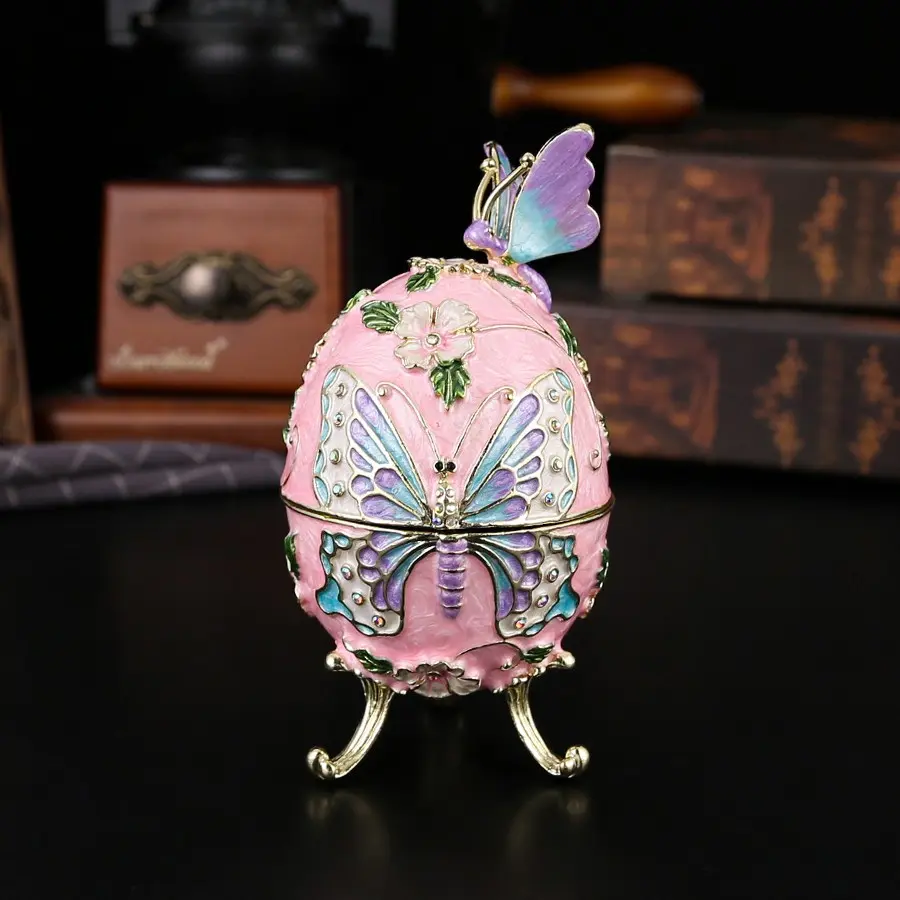 Charming Egg-Shaped Butterfly Jewelry Box, Elegant Metal Treasure Chest, Ideal for Souvenirs and Decor, Perfect Holiday Gift