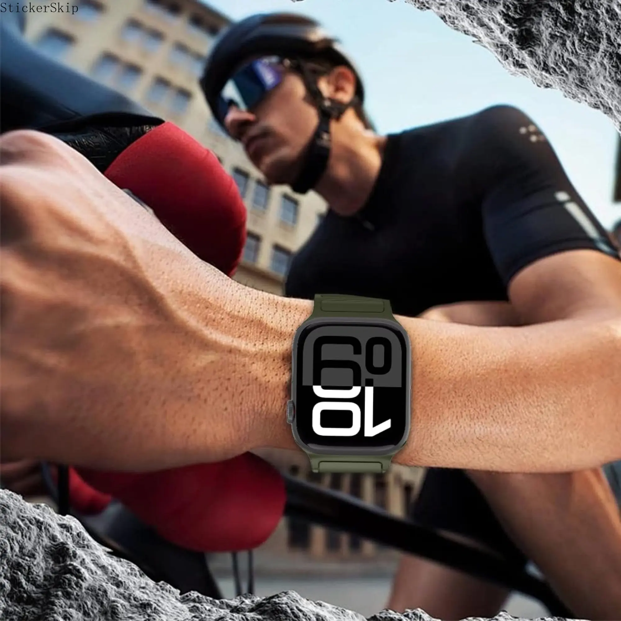 This strap integrates magnetic closure with flexible silicone, merging convenience and comfort for daily life and fitness scenarios.