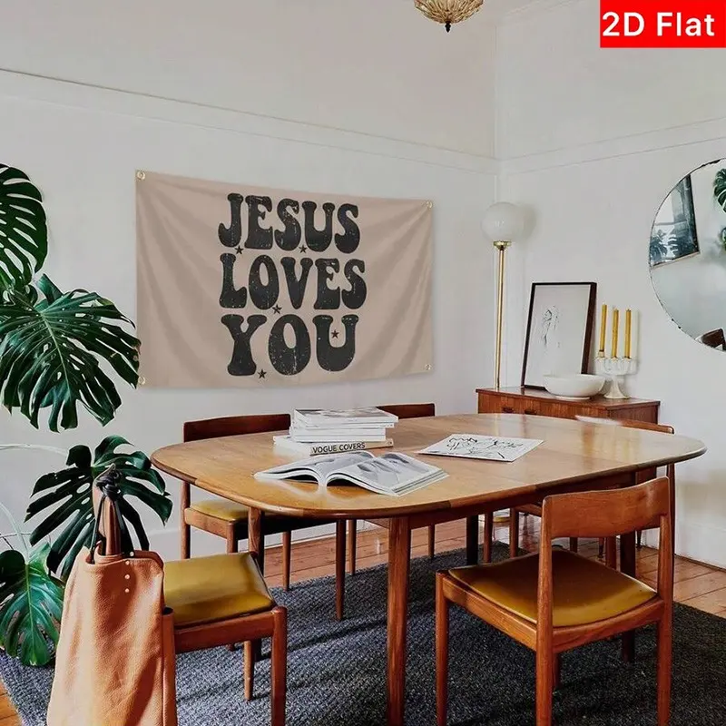 2D Flat Banner 1pc, Jesus Loves You Wall Hanging, Fun Decor for University Dorms, Elegant Gift for Graduation, Mother's Day, Father's Day