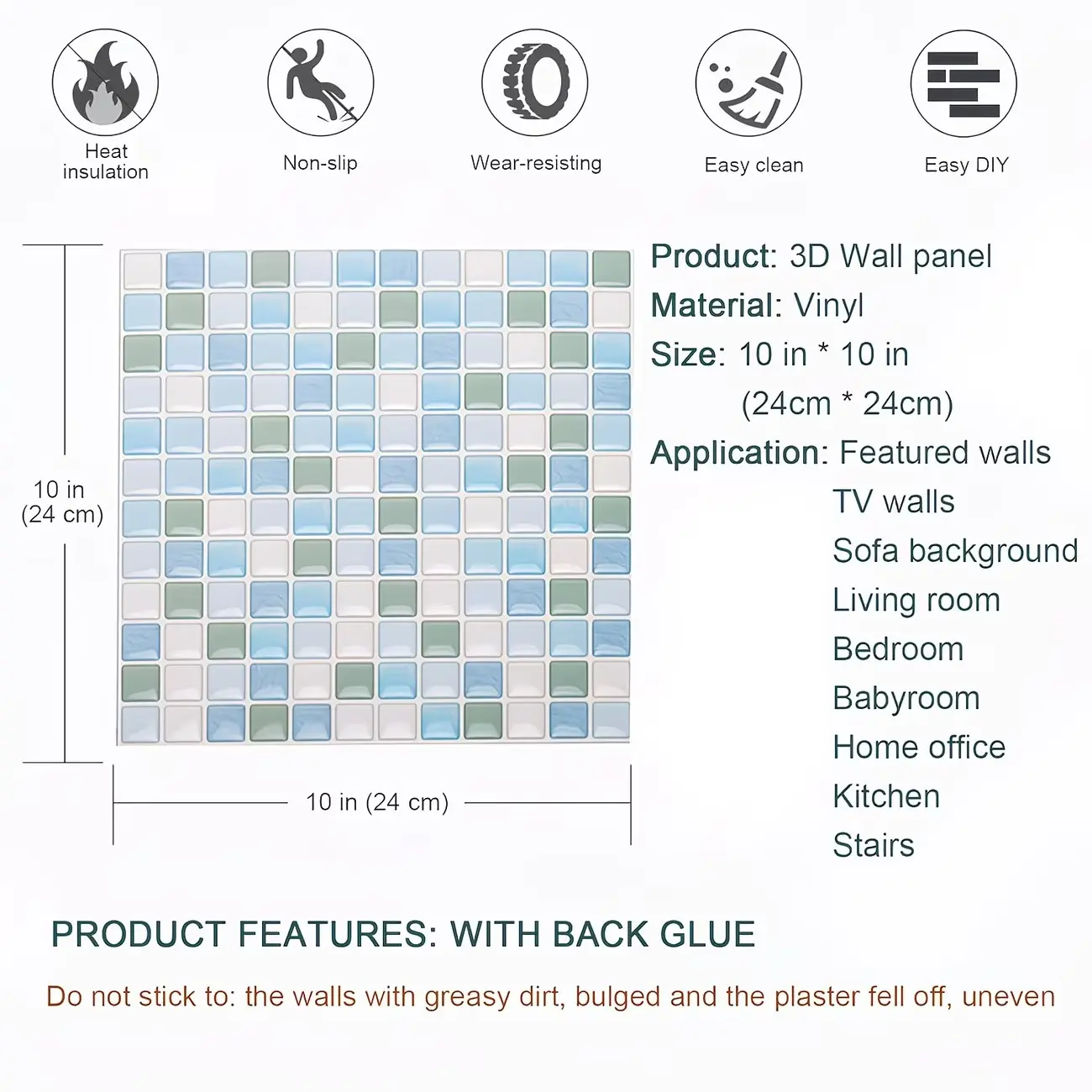 【3D Mosaic Design】: Adds a unique and vibrant touch to any room with its crystal resin 3D mosaic tiles.