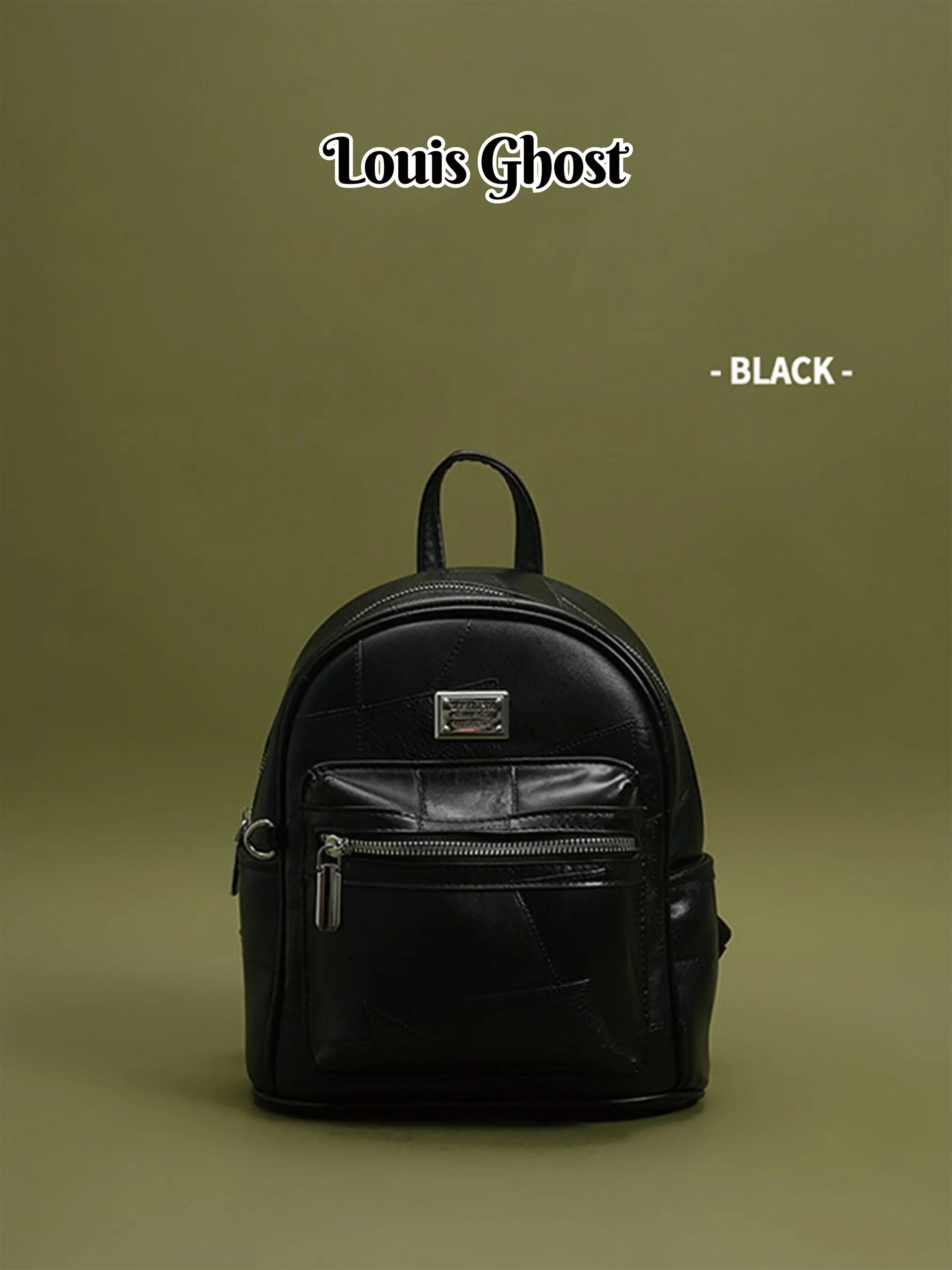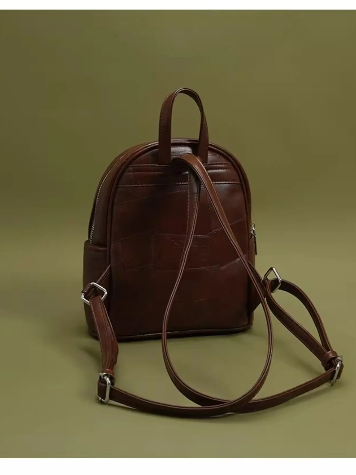 Patchwork leather mini backpack - Women's fashionable casual daily bag; Exquisite and small school schoolbag, with silver hardware and zipper pocket; Versatile soft PU leather backpack, suitable for travel, commuting and daily wear; Douyin best-selling fa