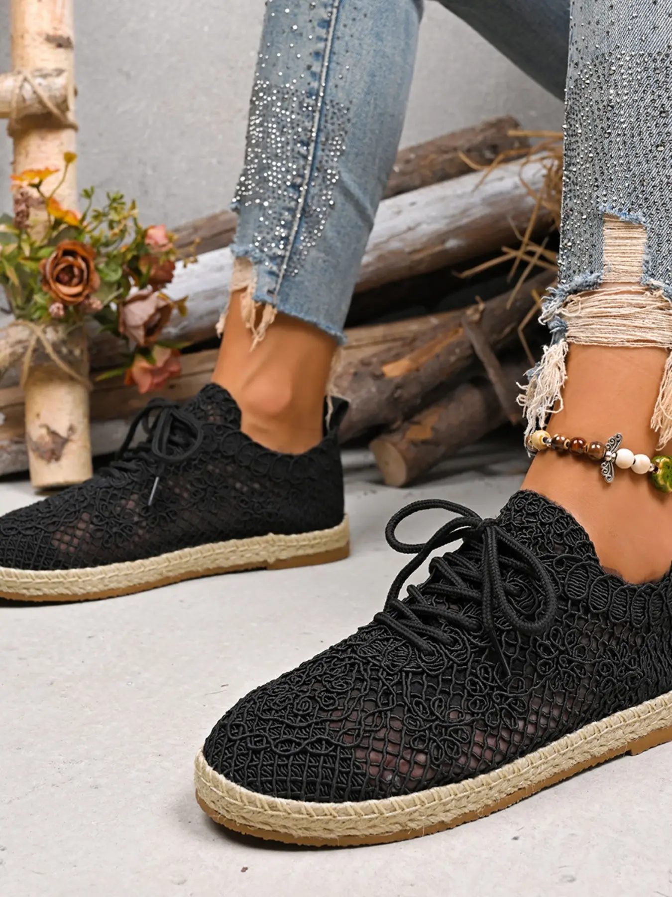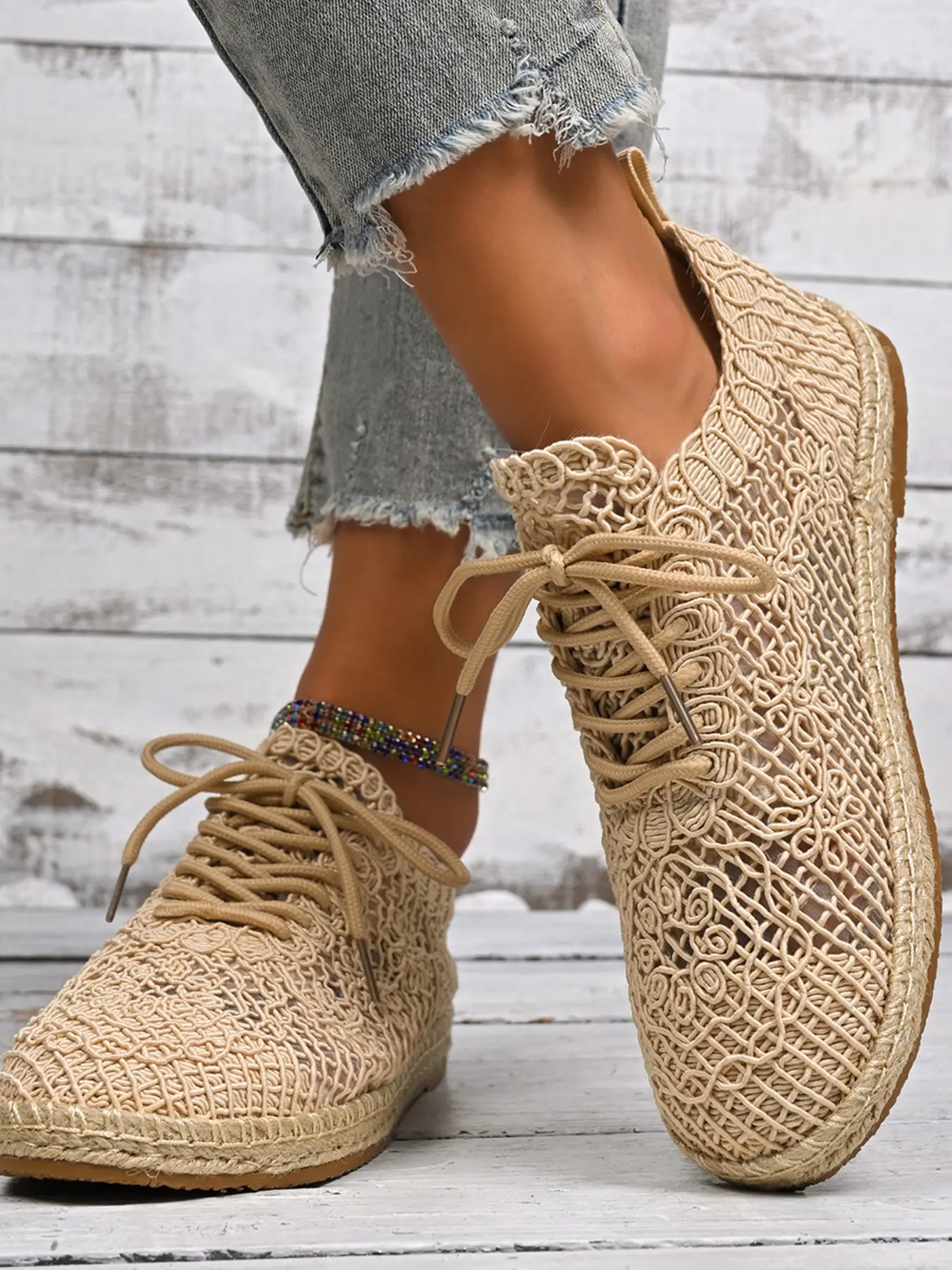Women's Summer Crochet Sneakers, Casual Breathable Mesh Shoes, Handmade Hooked Knit, Round Toe, Low Ankle, Random Print, Fashion Trendy
