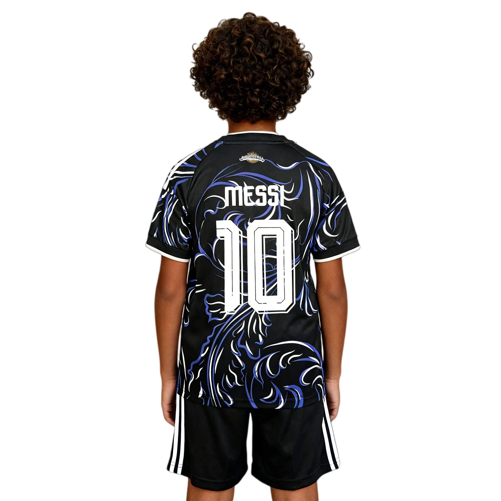 2026 Argentina National Team Away Black And Sky Blue 10# Messi Short Sleeve Set Soccer Jersey Children's Version Breathable