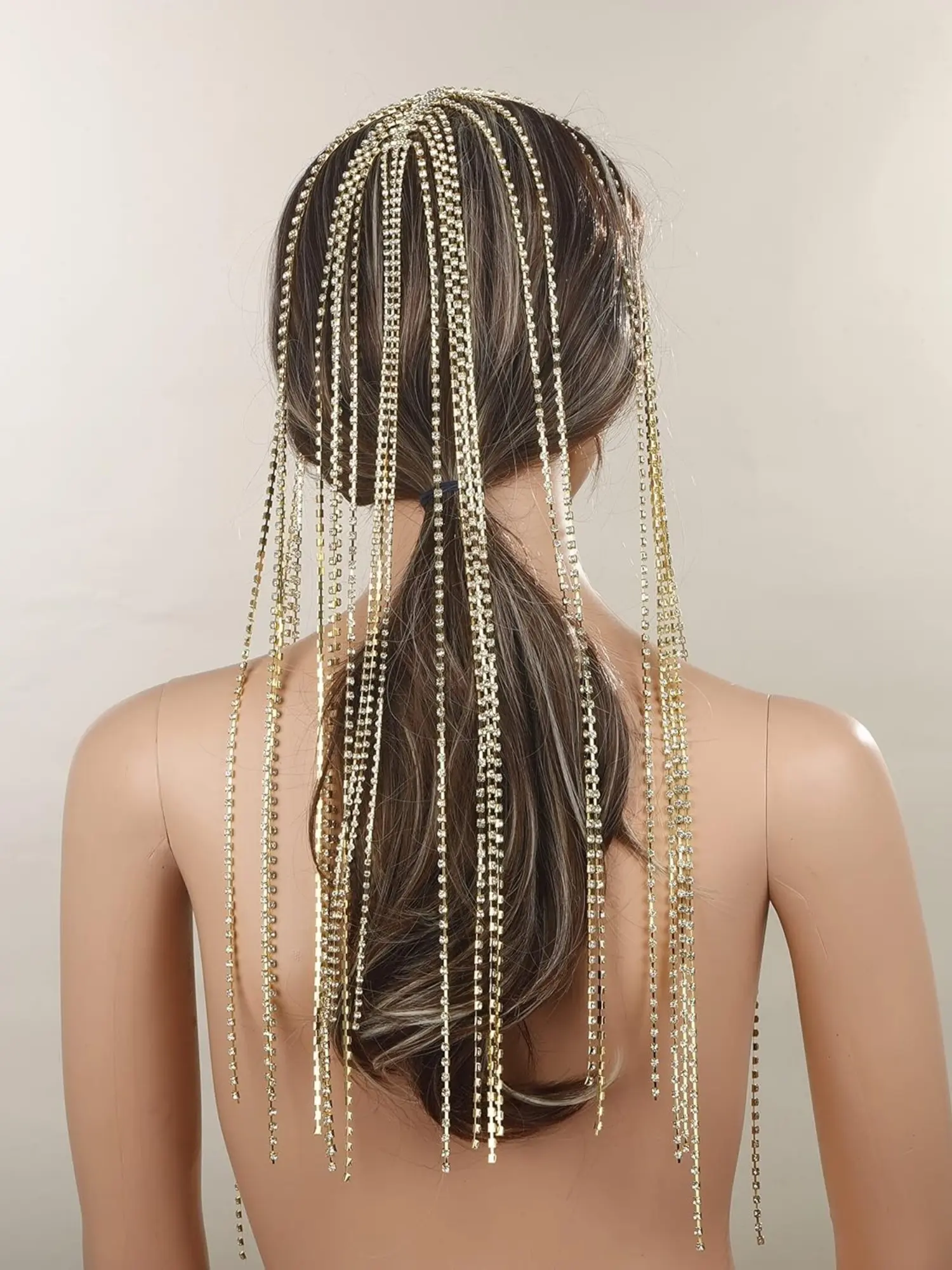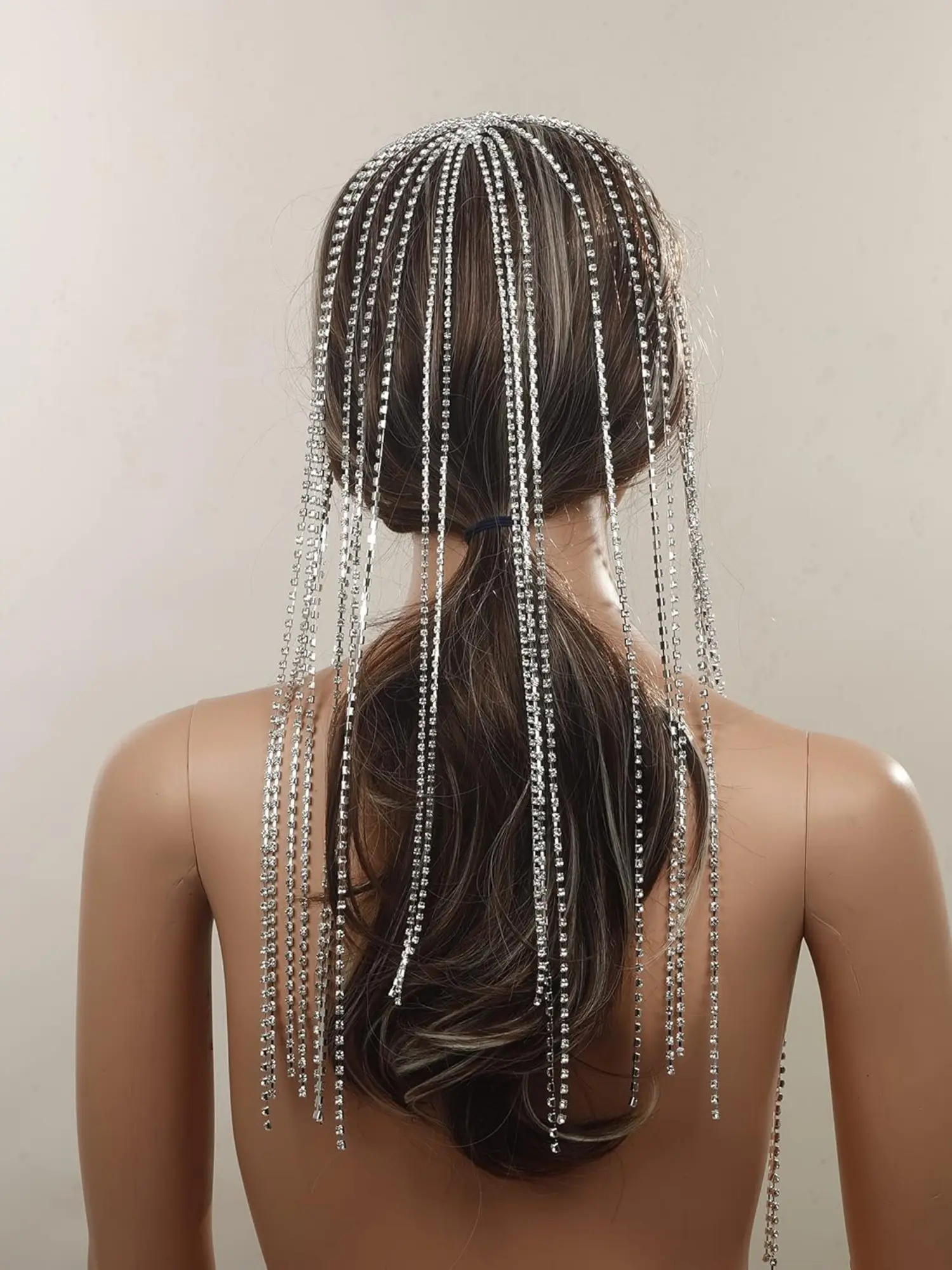 Elegant Silver Color Tennis Chain Headband with Rhinestones and Long Tassels, Crystal Hair Band for Wedding Bride Party Ball Gown