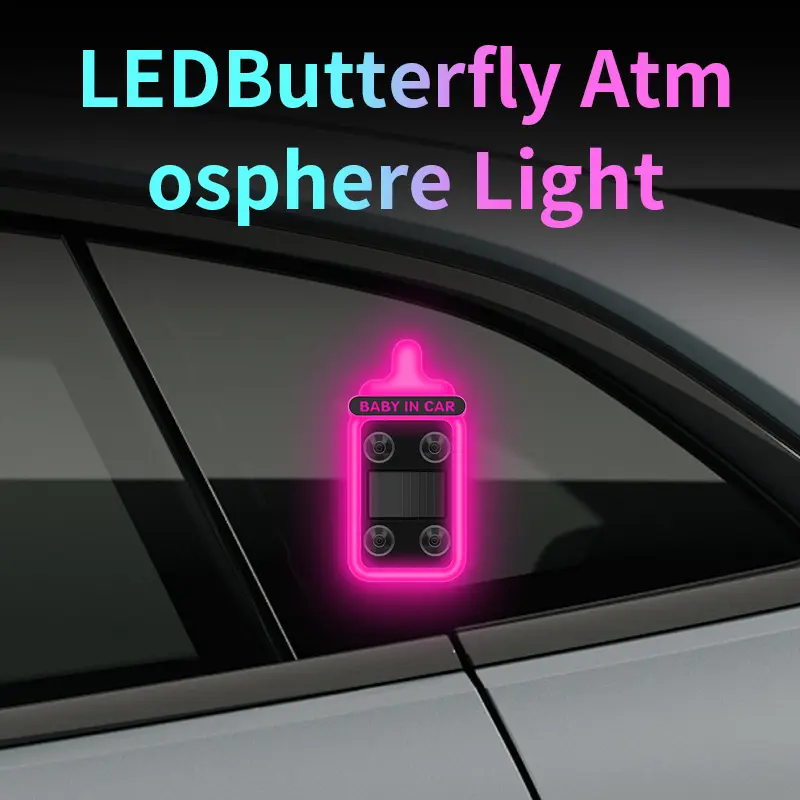 Car Baby Bottle Light Solar LED Decorative Warning Light, Triangle Window & Rear Window Interior Ambient Light, Baby On Board