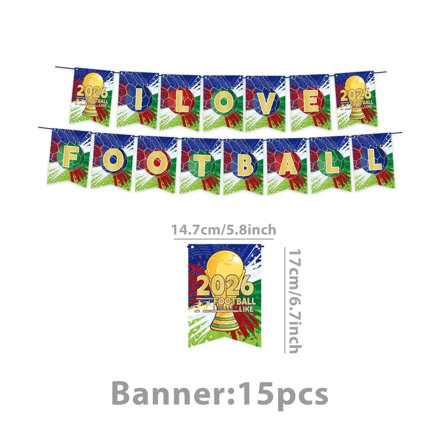 【Complete Set】: Includes banners, balloons, hanging decorations, and more for a full soccer-themed party setup.