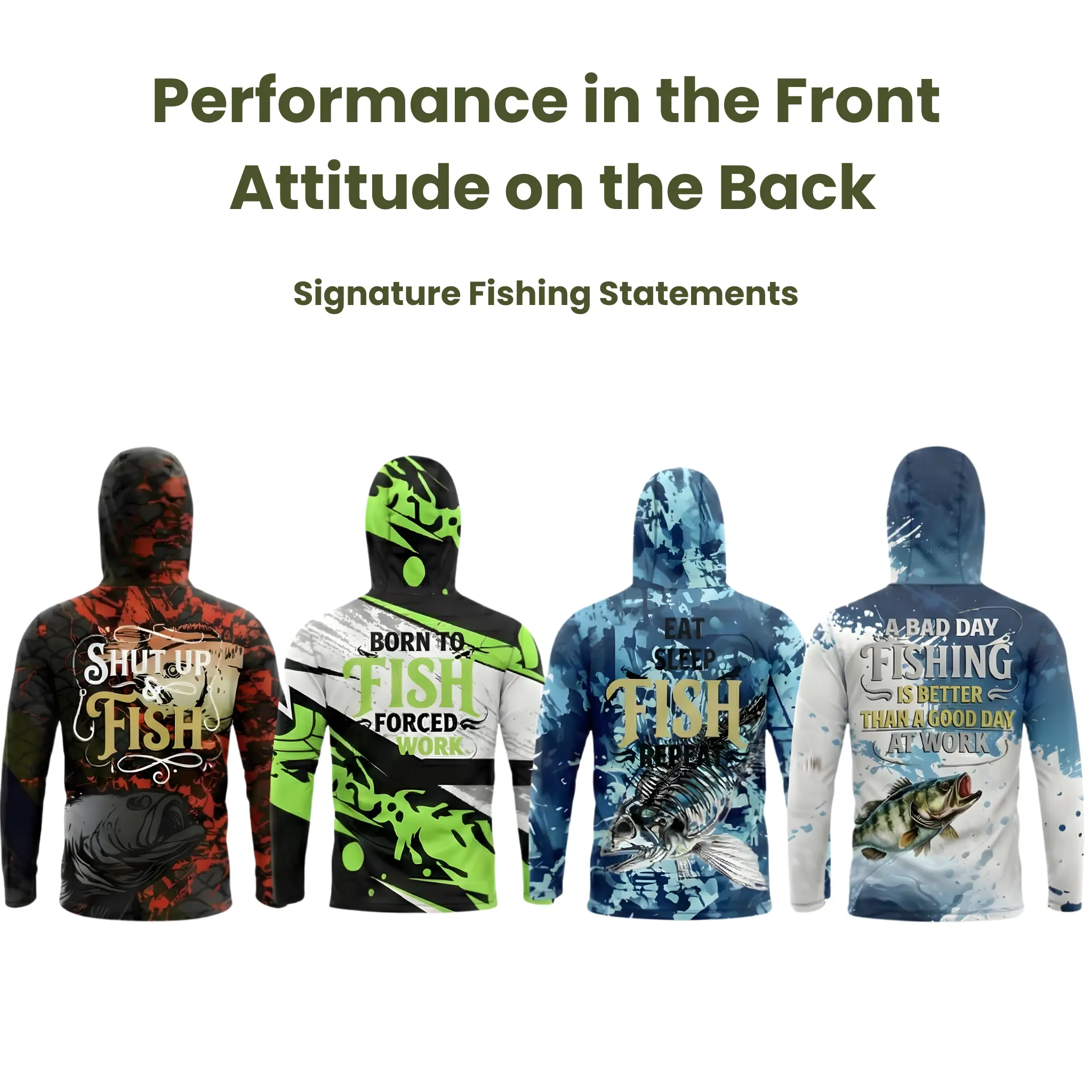 ✔️ UPF 50+ sun protection ✔️ Breathable fabric (no more sweating) ✔️ Integrated face shield for full coverage ✔️ Thumb holes to protect your hands ✔️ Lightweight & quick-dry