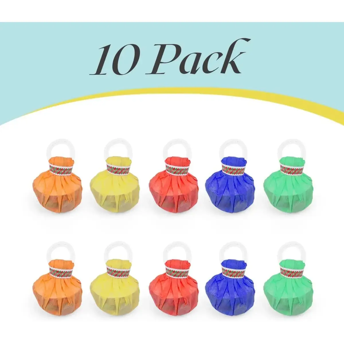 10 Packs with 30 ribboons reach to 17 ft : Made of flame retardant tissue paper. 10 pack colorful party poppers in total, and each crackers poppers has 30pcs ribbions inside, and the length of each streamer is approx 17 ft