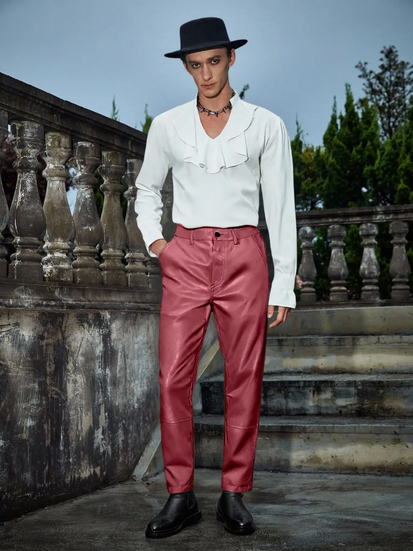 Men's Glossy PU Leather Straight Leg Pants, Motorcycle Style Streetwear Slim Fit, Fashionable Long Pants for Daily Wear