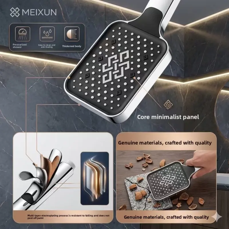 Electroplated silver showerhead + 1.5m pipe