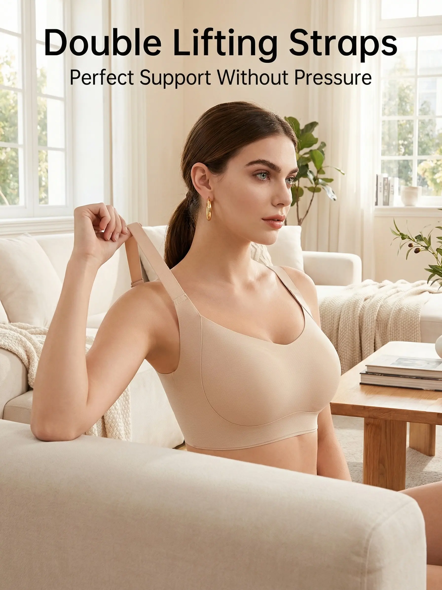 Lingerie for women with large breasts, makes breasts appear smaller, no underwire, reduces excess fat, prevents sagging, gathers breasts, large size bra, full cup, makes the body appear slimmer