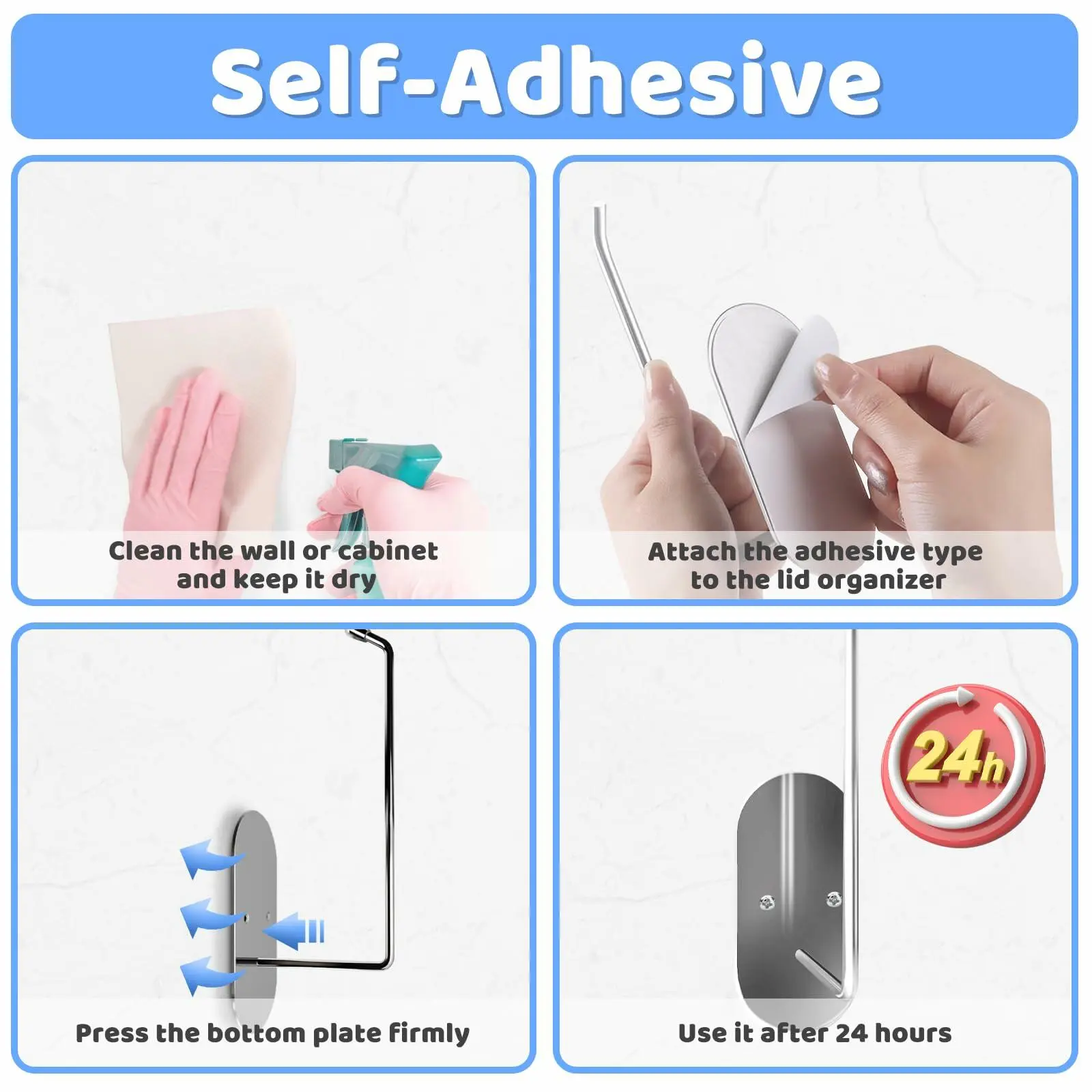 Space-Saving Solution for Your Kitchen: If you're looking for a way to declutter your kitchen counters and maximize storage space, look no further than our cup lid holder. This compact yet efficient organizer will keep your cup lids neatly stacked and easily accessible, freeing up valuable counter space for other cooking and baking essentials. With its space-saving design, you'll never have to worry about losing track of your lids again. Versatile and Multi-Functional for Everyday Use: The versatility of our cup lid holder makes it a valuable addition to any kitchen. Whether you're enjoying a hot cup of coffee in the morning or entertaining guests with a variety of beverages, this holder will keep your lids organized and ready to use. Its multi-functional design also allows you to use it for other purposes, such as storing small kitchen tools or accessories, making it a truly versatile piece of kitchenware. Flexible Installation Options for Your Convenience: We understand that every kitchen is unique, so we've designed our cup lid holder with two convenient installation options. Whether you prefer a strong adhesive for a quick and easy setup or screws for a more permanent fixture, we've got you covered. Both installation methods are simple and straightforward, allowing you to choose the one that best suits your needs and preferences. Stainless Steel Durability for Long-Lasting Use: Constructed from high-quality stainless steel, our cup lid holder is built to withstand the test of time. This durable material is resistant to rust and corrosion, ensuring that your holder will maintain its beauty and functionality for years to come. Whether you're using it daily or occasionally, you can trust that our stainless steel holder will hold up to the rigors of kitchen use. Sleek and Stylish Design to Complement Your Kitchen: Not only is our cup lid holder functional, but it's also stylish and sleek. Its modern design will complement any kitchen décor, whether you have a traditional or contemporary style. The holder's sleek lines and smooth finish add a touch of elegance to your cooking space, making it a pleasure to use as well as a beautiful addition to your kitchen.