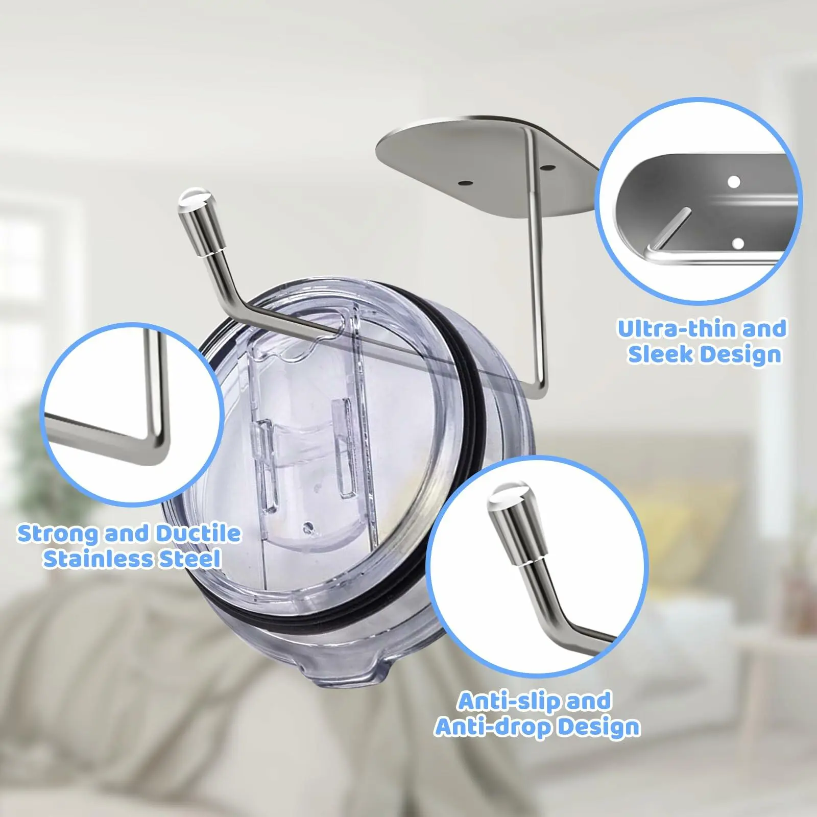 ·Universal Lid Organizer This organizer holds up to 8 tumbler lids, suitable for both drinking and straw lids (straw hole > 0.24″). Its hooks are compatible with various lid sizes and brands like Yeti, Stanley, and Simple Modern. Easy and convenient storage for all your tumbler lids.