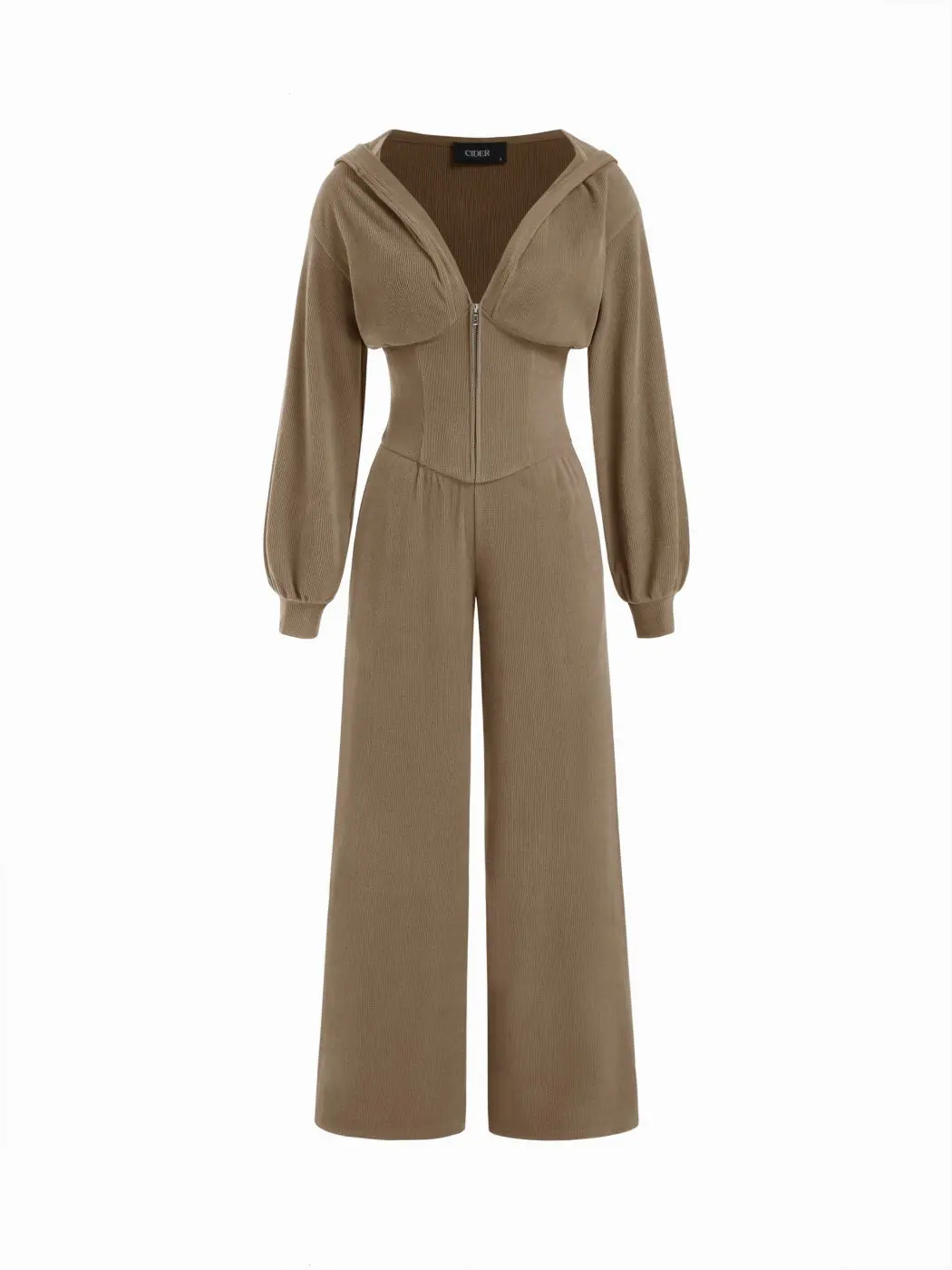 Women’s Hooded Zip Up Jumpsuit – Cinched Waist Casual Athleisure Outfit