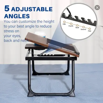 This adjustable laptop desk features 5 adjustable tilt angle slots, allowing you to customize your ideal height and viewing angle. Designed to reduce strain on your eyes, back and neck, it provides comfortable support for working, studying or browsing in bed, on the sofa or anywhere at home. Lightweight, portable and durable, it is the perfect companion for a healthier and more relaxed daily digital life.