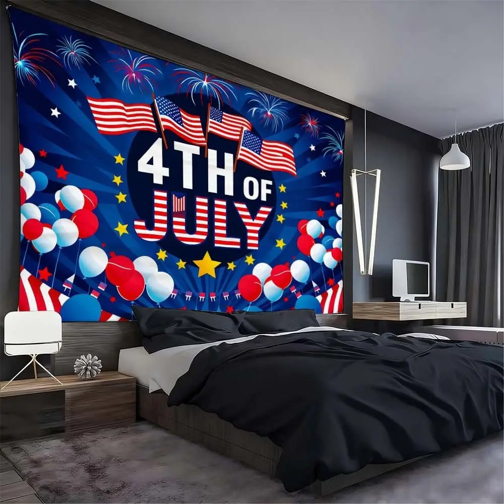 1PC Independence Day themed tapestry for enhancing home atmosphere perfect for bedrooms and living rooms ideal for gatherings and celebrations wall decoration featuring vibrant stars stripes flags and fireworks background fabric adding festive vibes to an