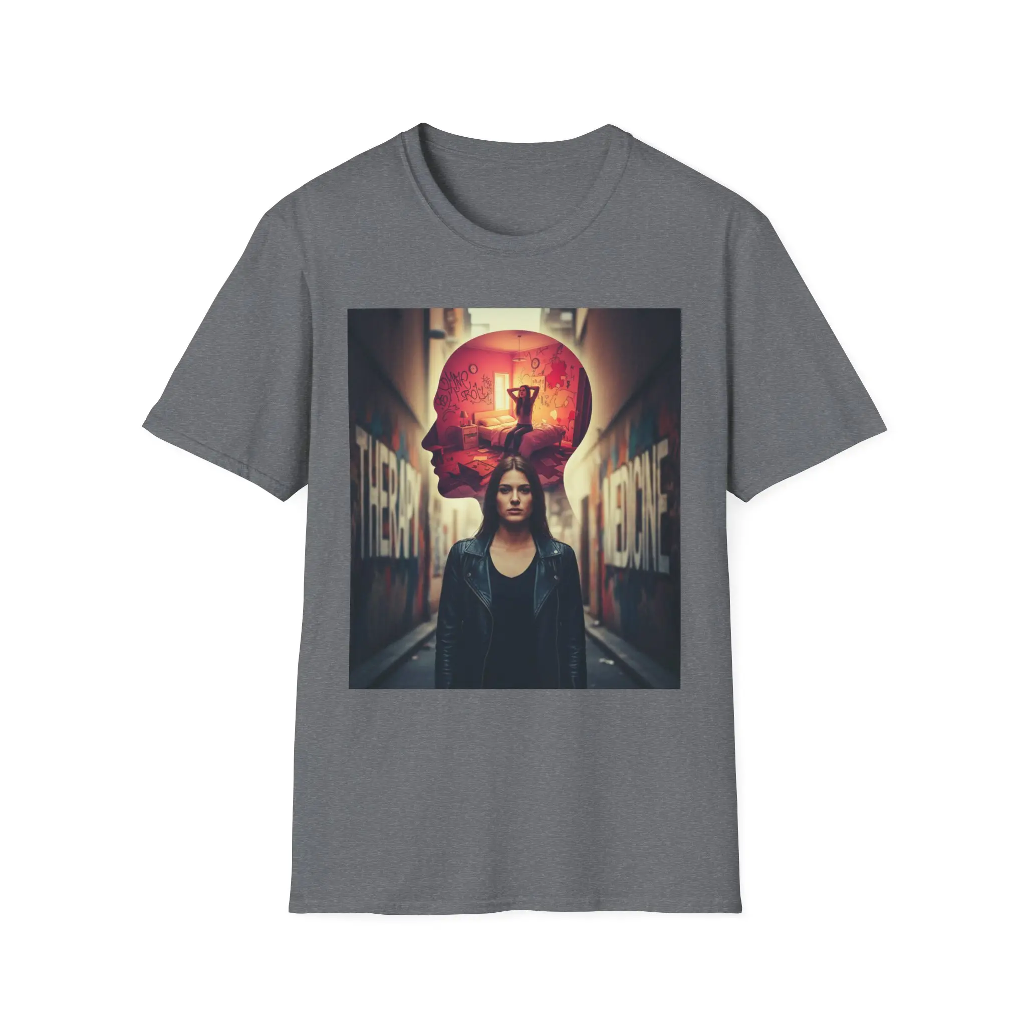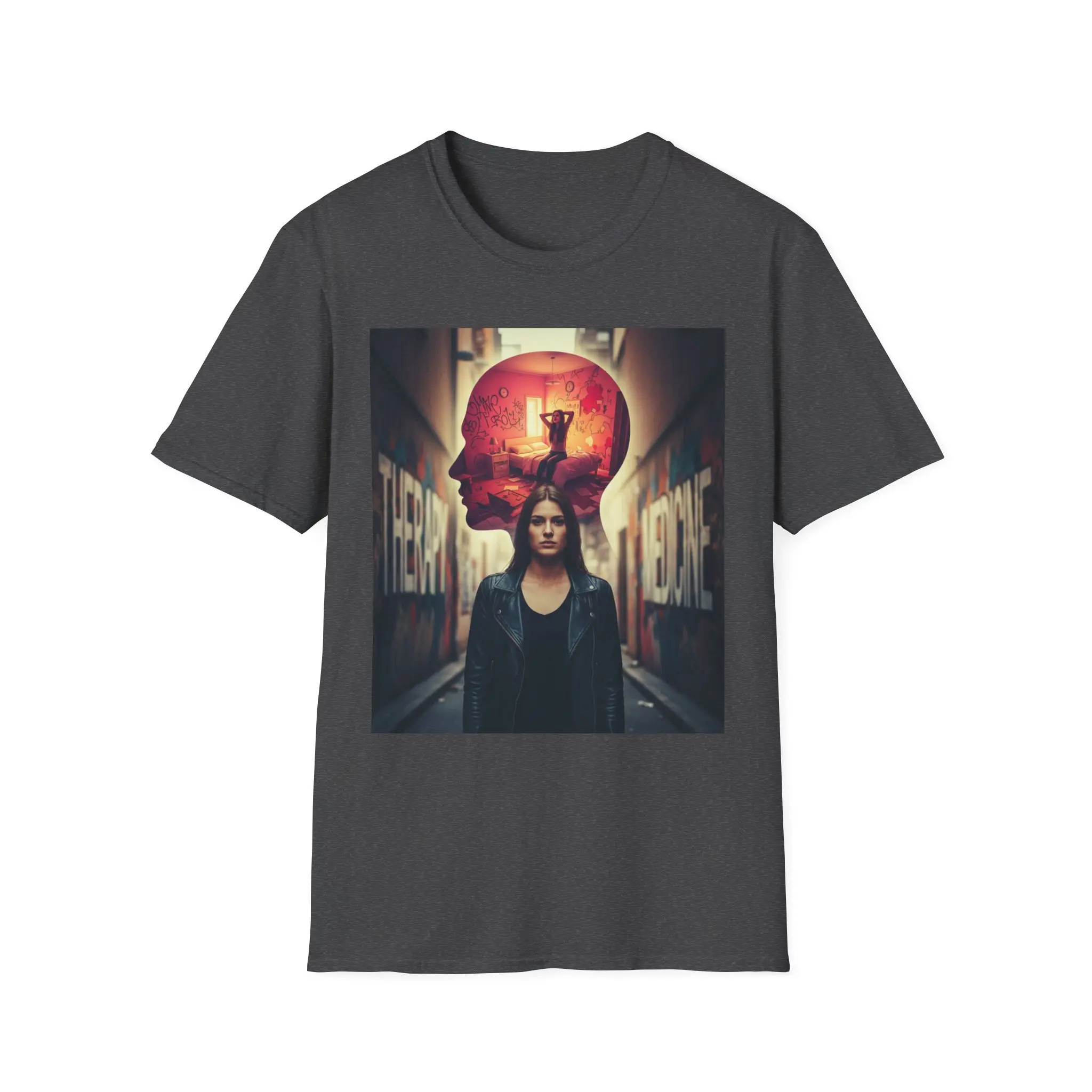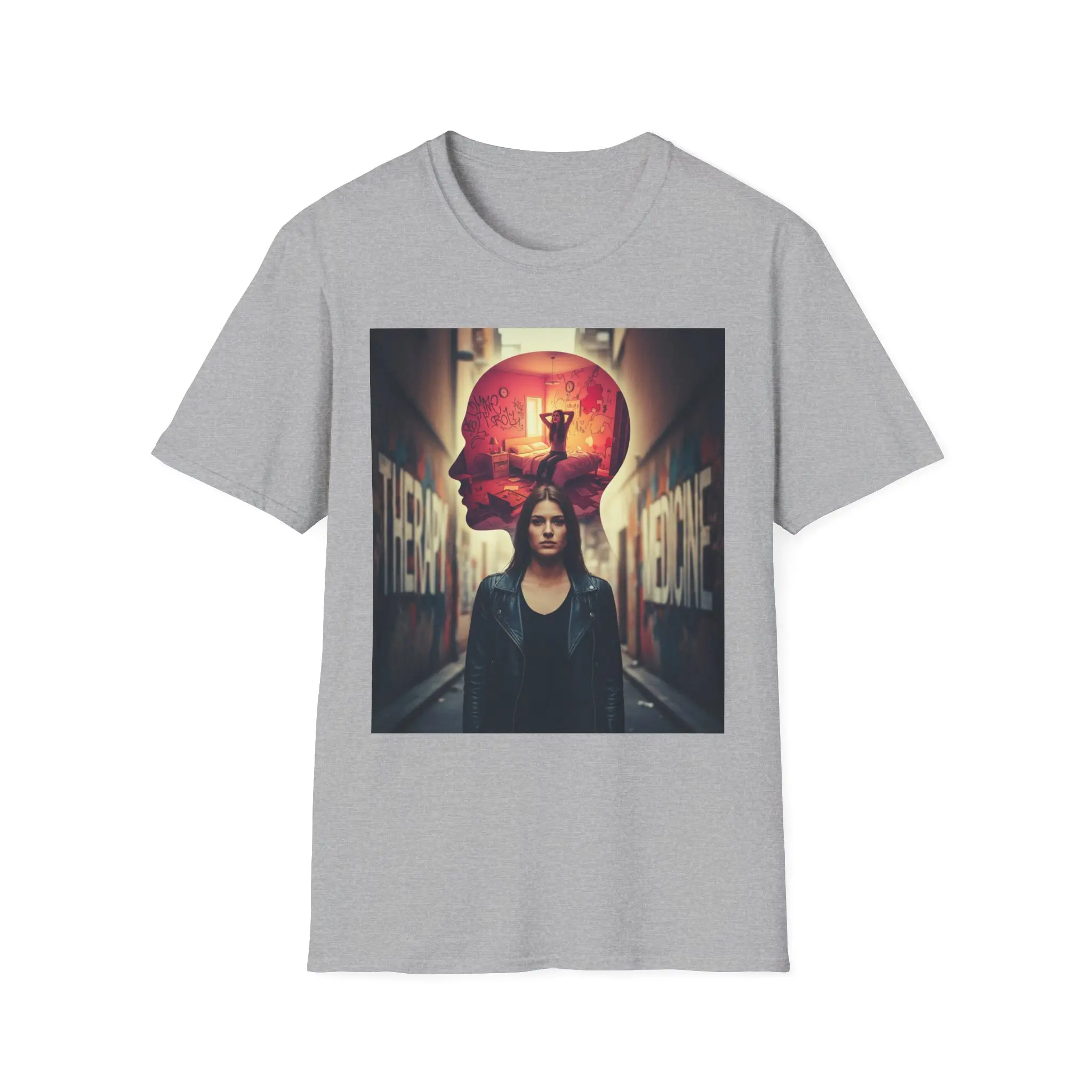 A lightweight, breathable tee that carries a cinematic, urban-psychic vibe. The front print layers a lone figure against a back-alley setting with a glowing, surreal skull silhouette overhead — moody, introspective, and slightly noir. Wear it to anchor a layered streetwear look or to add an atmospheric statement piece to everyday outfits. The shirt’s soft ring-spun cotton body and clean crew neckline feel comfortable all day, while stable shoulder tape and a resilient ribbed collar keep the silhouette neat through repeated wear. Ethically sourced cotton and Oeko-Tex certification mean you can lean into this aesthetic with confidence.