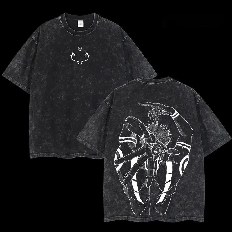 Retro Limited Vintage Ryomen Sukuna Signature Jujutsu Kaisen Anime Double Printed Washed Tee Unisex Oversize Anime Manga Lightweight Cotton T Shirt Fashion Streetwear Casual Top Gift For Anime Fan Lovers