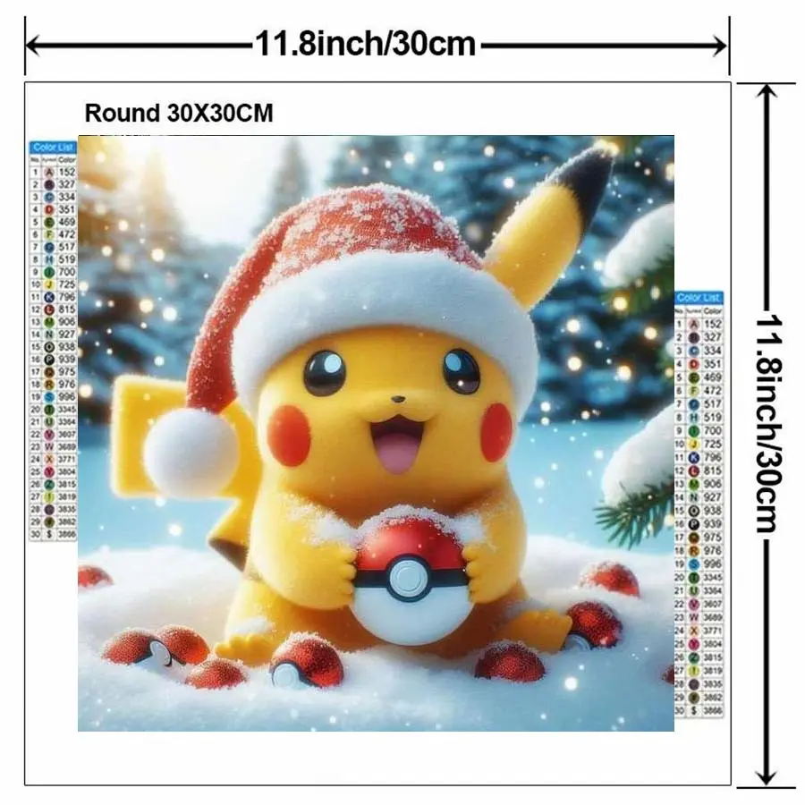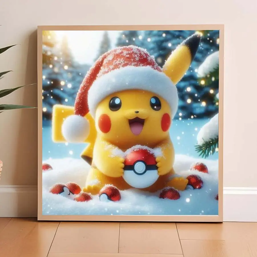 5D DIY Full Drill Round Diamond Painting - Diamond Art Kit Christmas Pikachu Mosaic, Canvas - DIY Decorative Art, Home Wall Decor, Suitable for Halloween and Christmas, Birthday and Anniversary Gifts