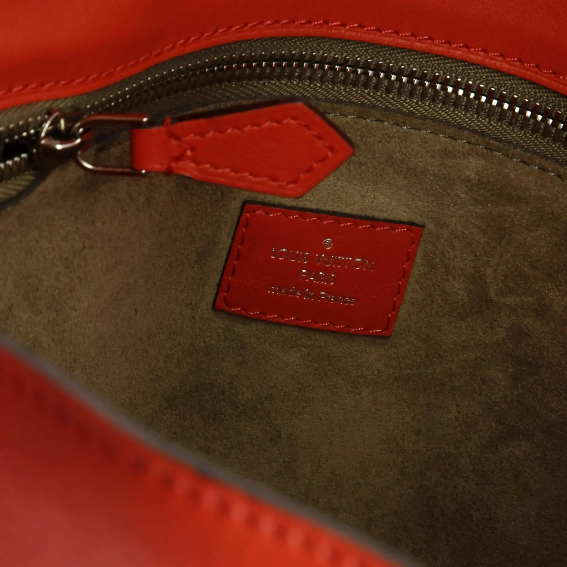 These are professional pictures of the actual item offered by Rebag. Condition: Fair. Exterior: repainted wax edges, scuffs, creases, cracking, corner wear | Handles/Straps: repainted wax edges, creases | Interior: moderate odor, scuffs | Hardware: scratches Accessories: With Strap Measurements: Handle Drop 3.5", Height 14", Width 13.5", Depth 5.5", Strap Drop 13.5" Designer: Louis Vuitton Model: Voyage Bagatelle Hobo Leather Exterior Material: Leather Exterior Color: Red Interior Material: Suede Interior Color: Neutral Hardware Color: Silver Brand Code: AH4113 Item Number: 356957/10