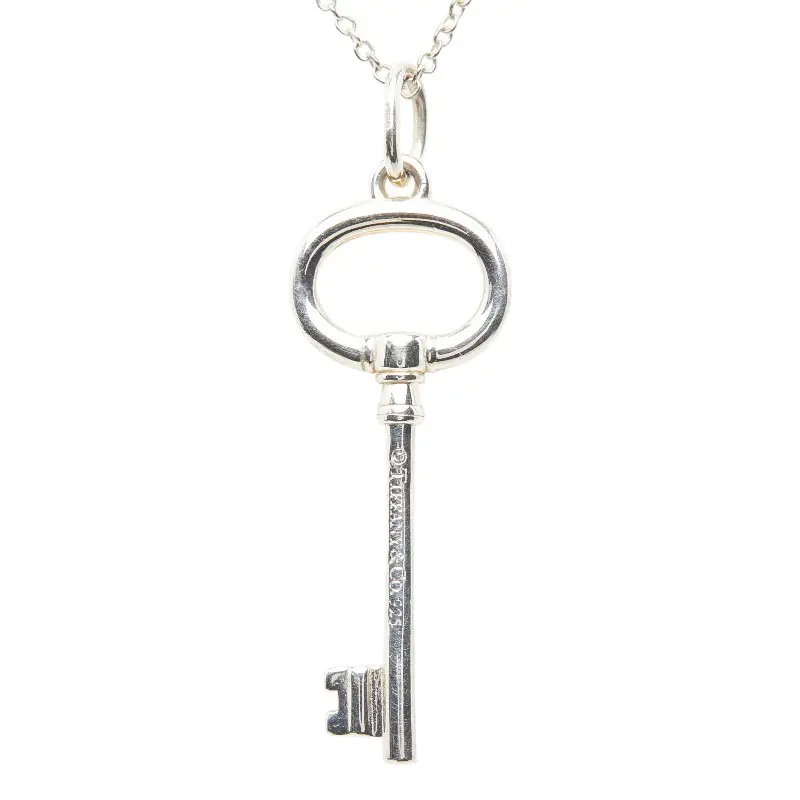 Pre-owned Tiffany & Co. Sterling Silver 925 (Ag925) Small Leather Goods TIFFANY&Co. Oval Key Silver Necklace