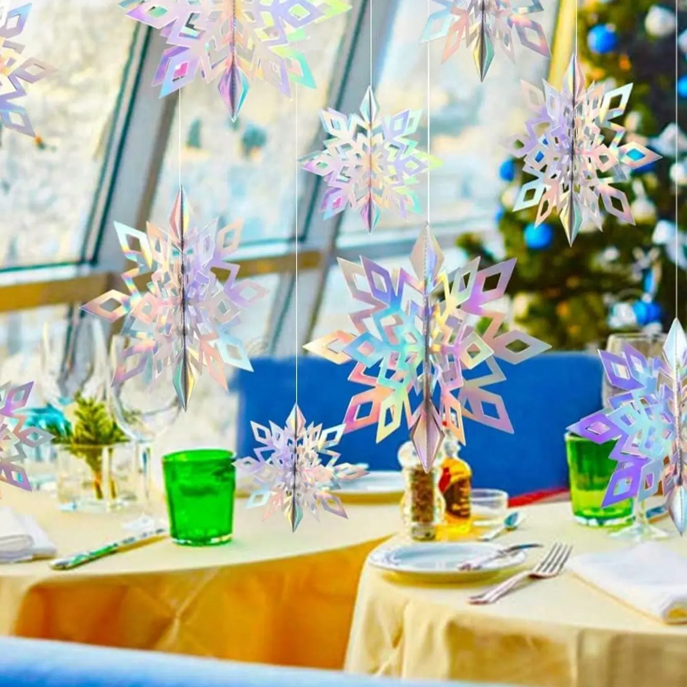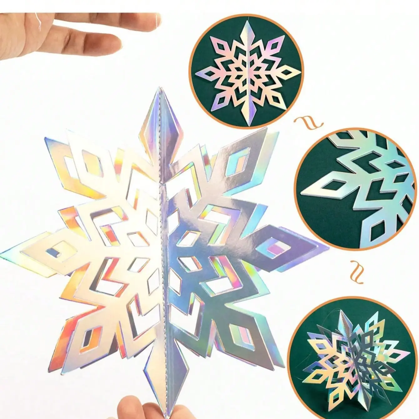 Christmas Hanging Snowflake Decor Set, 6/12 Pieces, 3D Rainbow Paper Snowflakes, Winter Wonderland, Christmas & Birthday Party Decoration