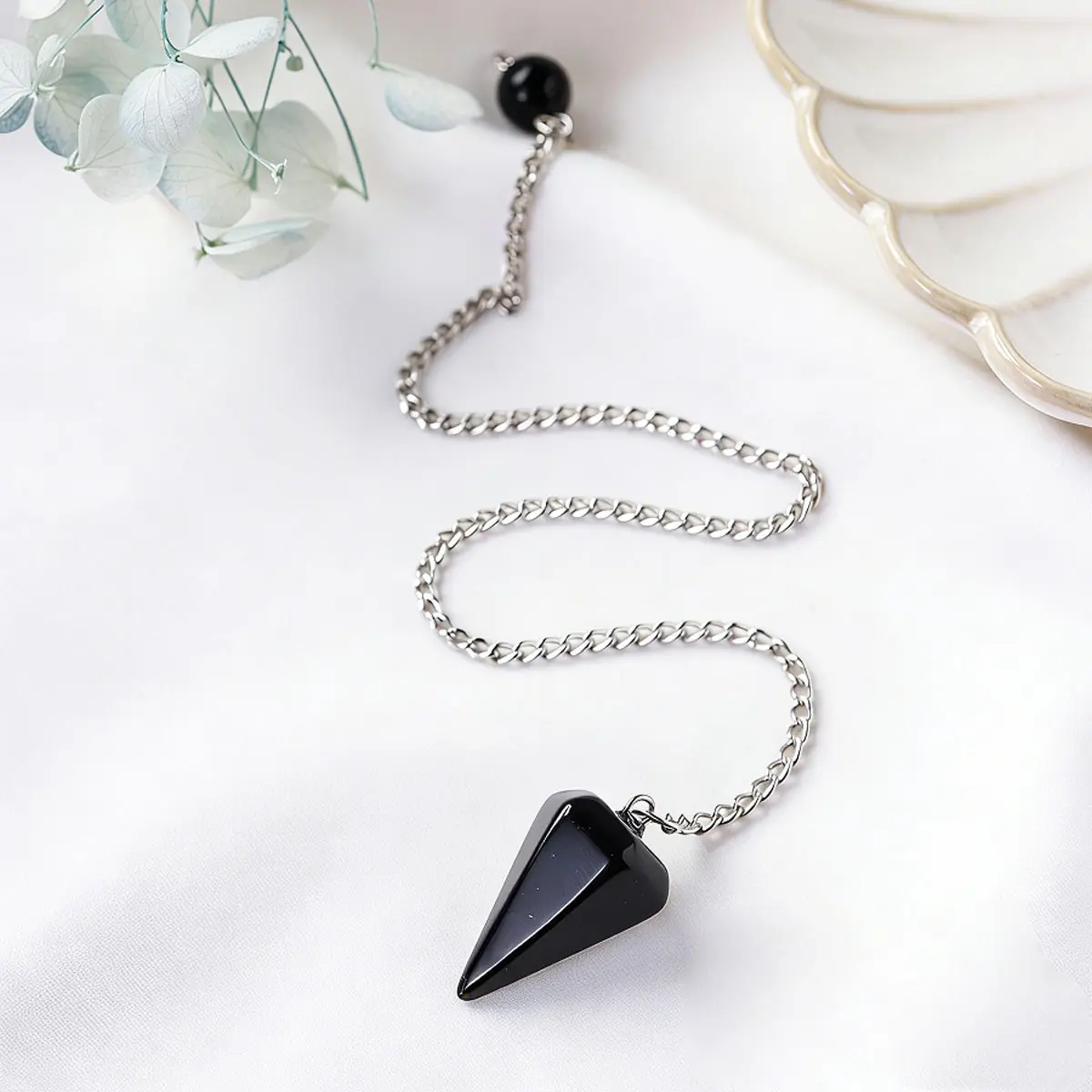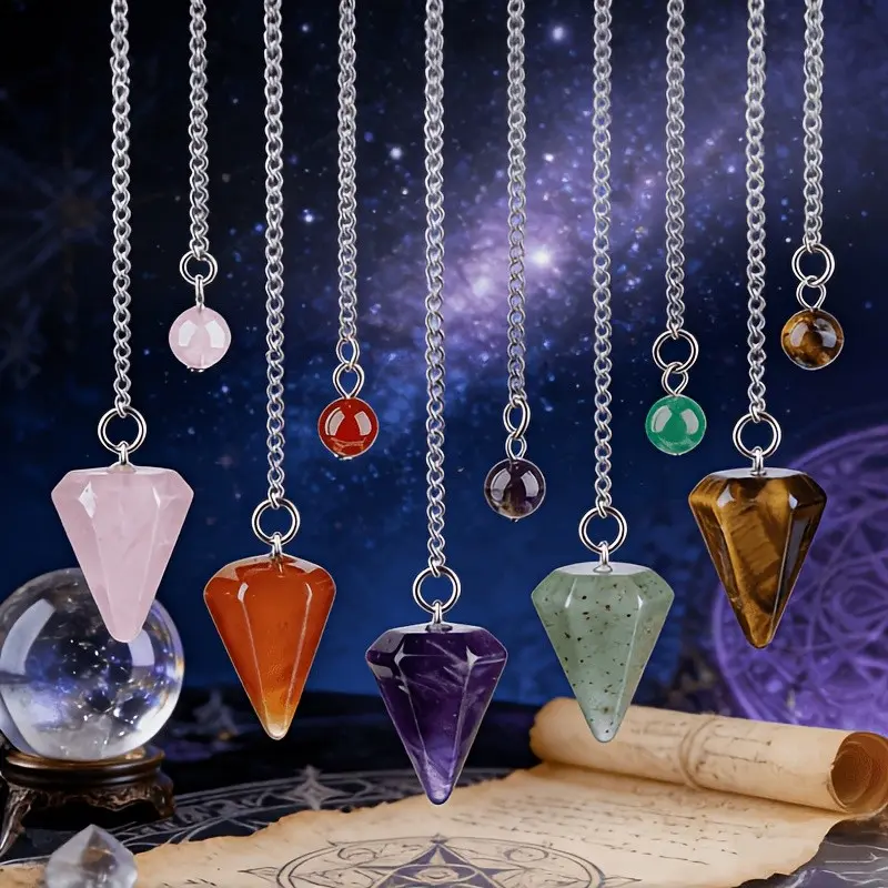 Natural Crystal Pendulum, Hexagonal Carved Stone Dowsing Pendulums, Amethyst Tiger's Eye Rose Quartz, Reiki Yoga Meditation Accessories