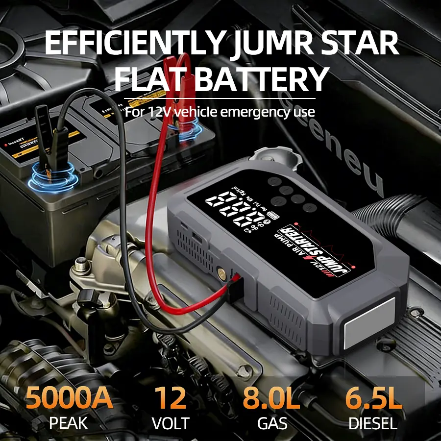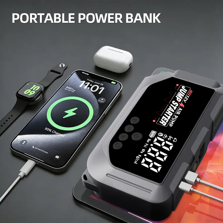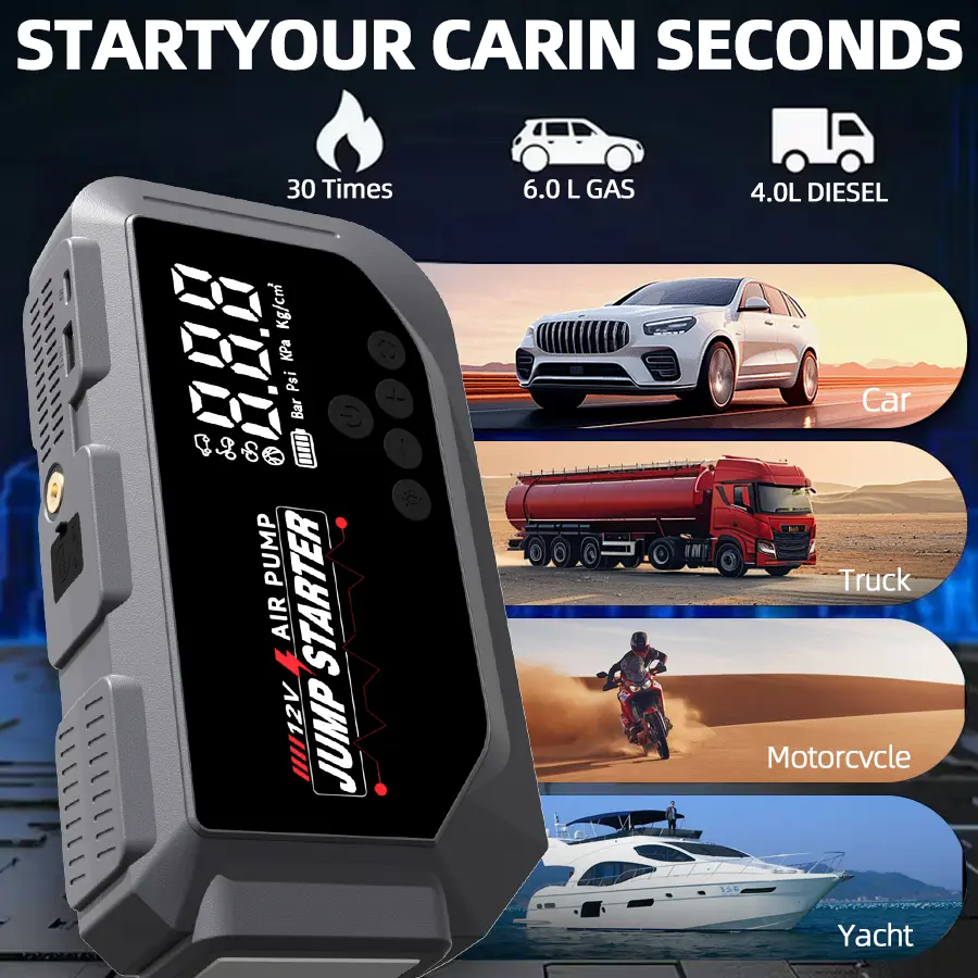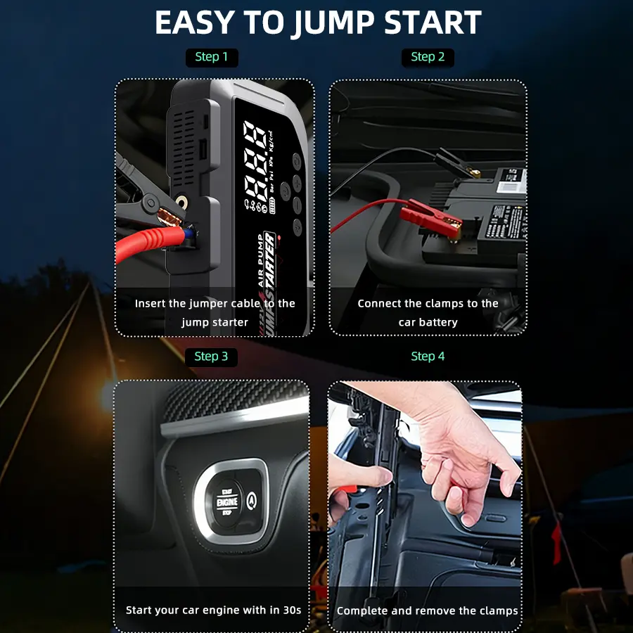 12V Portable Car Jump Starter 2000A Peak Emergency Battery Booster, Multifunction Power Bank with LED Light & Safe Protection, Universal Vehicle Jump Box for Roadside Assistance, Outdoor Camping and Daily Emergencies