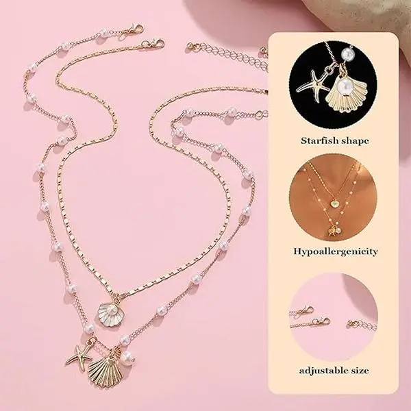 ChicBijoux S Seashell Necklace Layered Charm Starfish Necklace Stack Beach Wear for Women Boho Summer Accessories 14k Pearl Chain Surfer Jewelry Beachy Boho Outfits