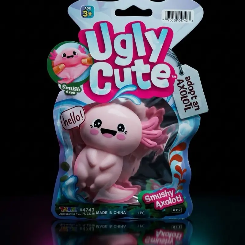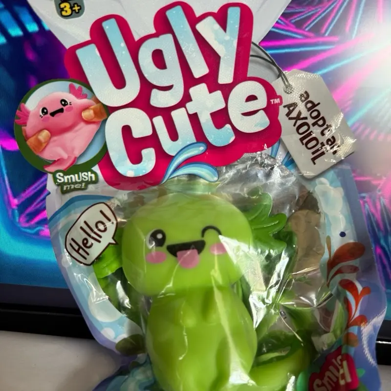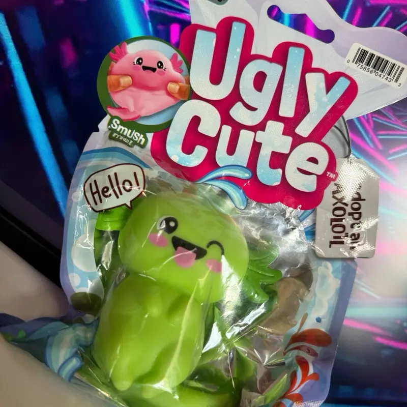 The Ugly Cute Smushy Axolotl is the softest, squishiest stress toy you'll ever squeeze. Each order comes as a MYSTERY COLOR — you could get pink, purple, blue, or green!
