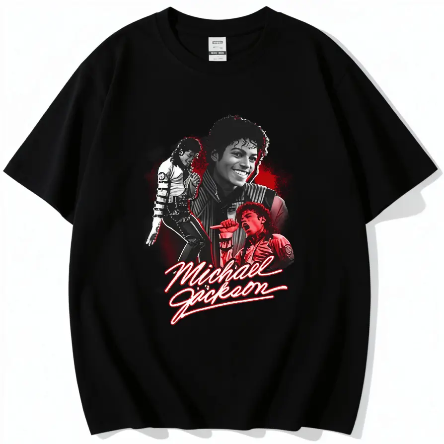 ·100% Cotton T-Shirt: Crafted for comfort, this casual t-shirt is perfect for everyday wear. It features Michael Jackson's iconic moments, making it a must-have for pop culture enthusiasts. Ideal for summer, it's a stylish choice for music fans.