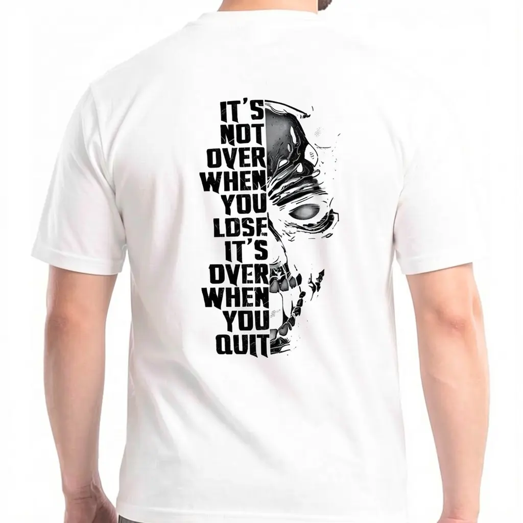 IT'S NOT OVER WHEN YOU LOSE IT'S OVER WHEN YOU QUIT Skull Print Men's T-Shirt Top Menswear Cotton Tee Shirt with Bold Design and Comfortable Material