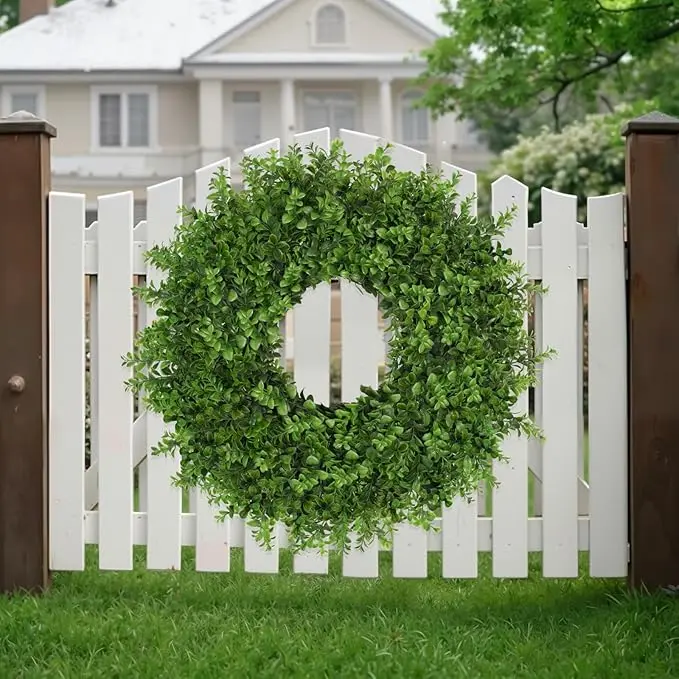 ·【Spring Wreath】 : This spring wreaths for front door is made of deep green to light green gradient boxwood leaves, which makes it look more vibrant and lifelike. The boxwood wreath is suitable for spring summer, fall, and winter all season decoration.