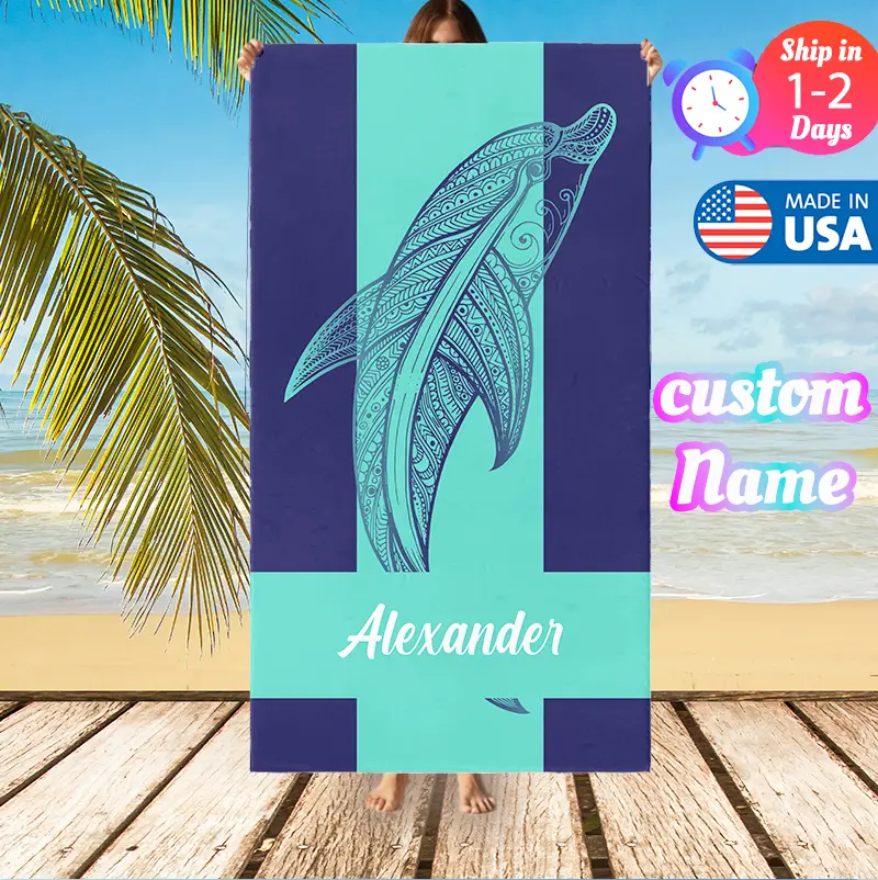 【PERSONALIZED CUSTOM NAME】: Add your custom name (like Alexander) to this boho tropical animal beach towel, a unique summer accessory for kids, teens, and ocean lovers.