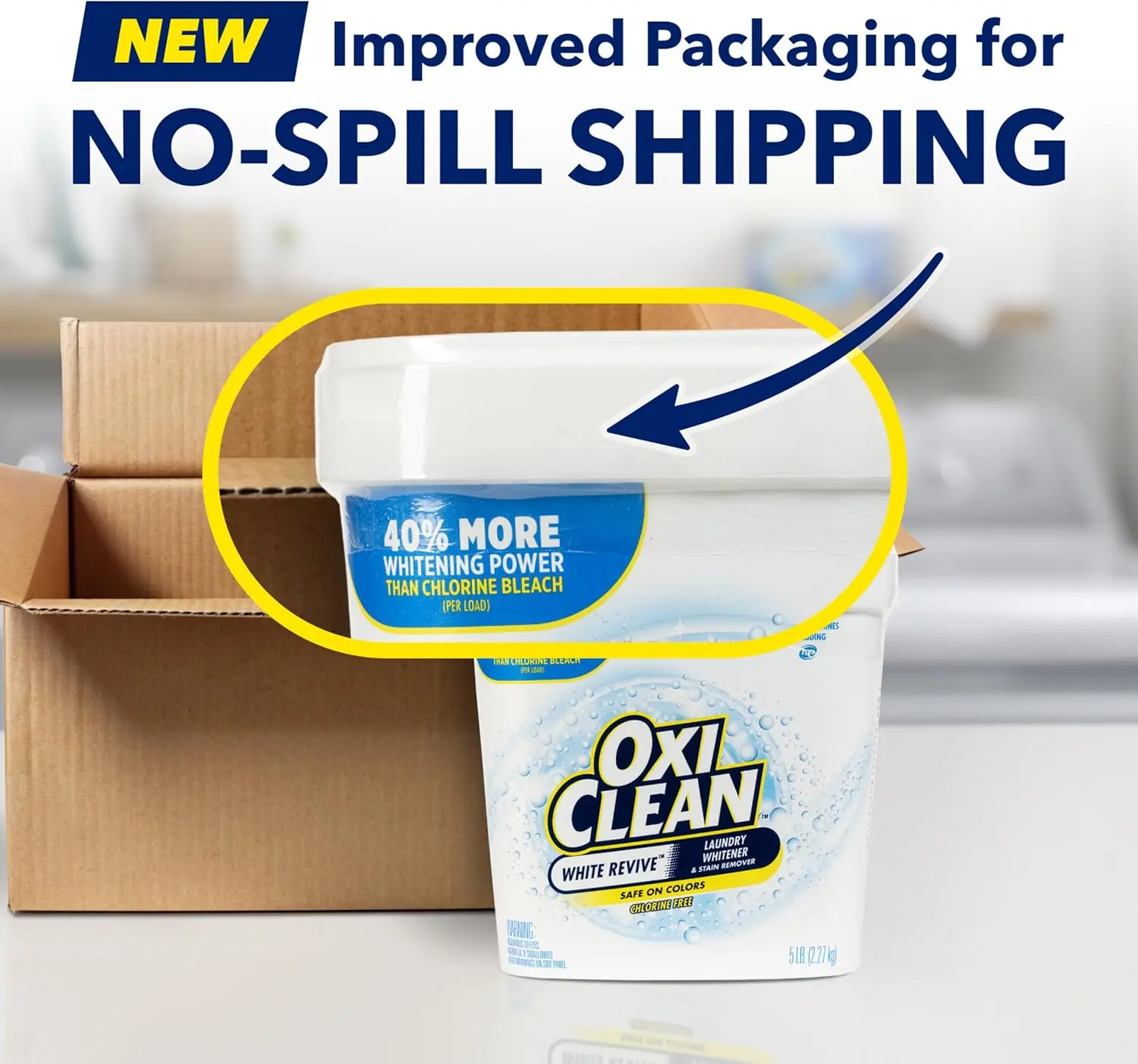 One 5 lb container of OxiClean stain remover and whitener powder to revive brilliant whites Oxygen-based, water-activated detergent laundry booster whitens whites 40 percent better than chlorine bleach per load Chlorine-free, color-safe clothes whitener revives dingy whites without risking chlorine spills and splatters from laundry bleach on colored clothing Mix OxiClean White Revive powder with water as a laundry presoak, or simply pour this laundry detergent booster following label directions in the drum of any HE or standard washer before adding clothes White Revive OxiClean powder for laundry is a chlorine bleach alternative that is perfect for t-shirts, sheets, underwear, machine-washable canvas shoes, socks, school uniforms and more, so your whites look their best ·One 5 lb container of OxiClean White Revive Laundry Whitener and Stain Remover Powder to revive brilliant whites